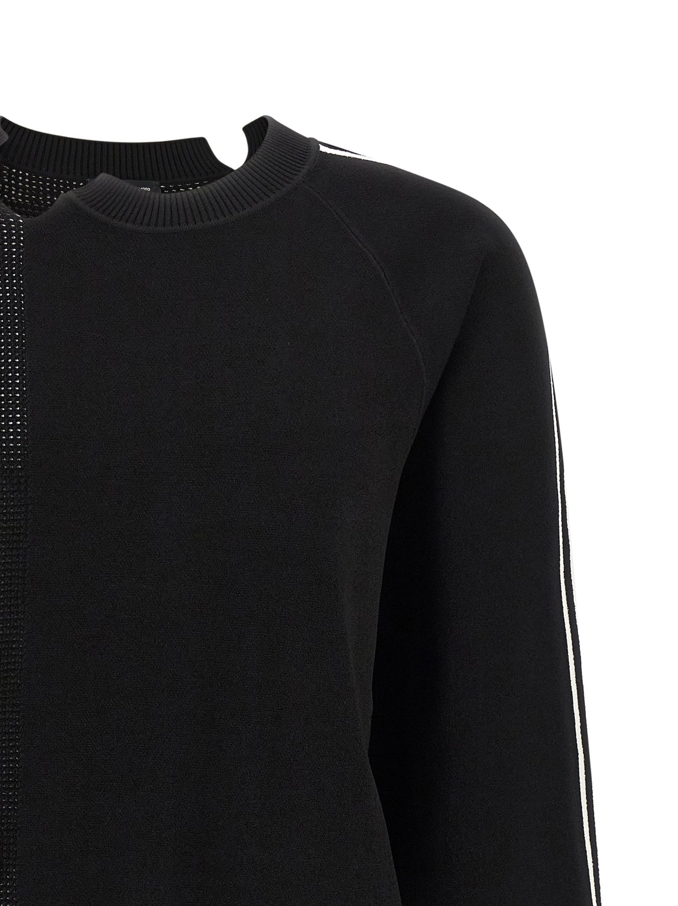 Y-3 Gfx' cotton sweater with woven structure details, asymmetric crew neck, front logo patch, long cuffed sleeves, satin thermal transfer logo print and asymmetric hem.