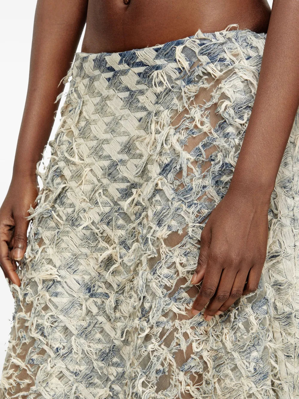 Houndstooth denim skirt Origin: Italy Features Matte white Houndstooth pattern Frayed edges Cotton Dévoré effect Composition Outer fabric: 83% cotton, 17% polyamide ID A20749007CC