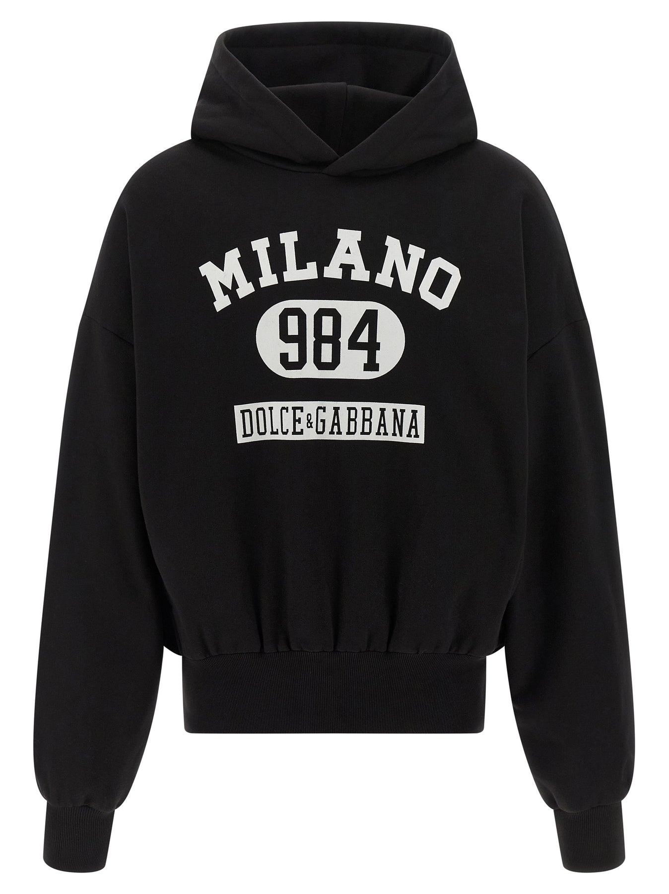 Dolce & Gabbana Flocked Print Hoodie Sweatshirt - White/Black | b425a2d001a6e0b8d28cc309444e9753955edbf7
