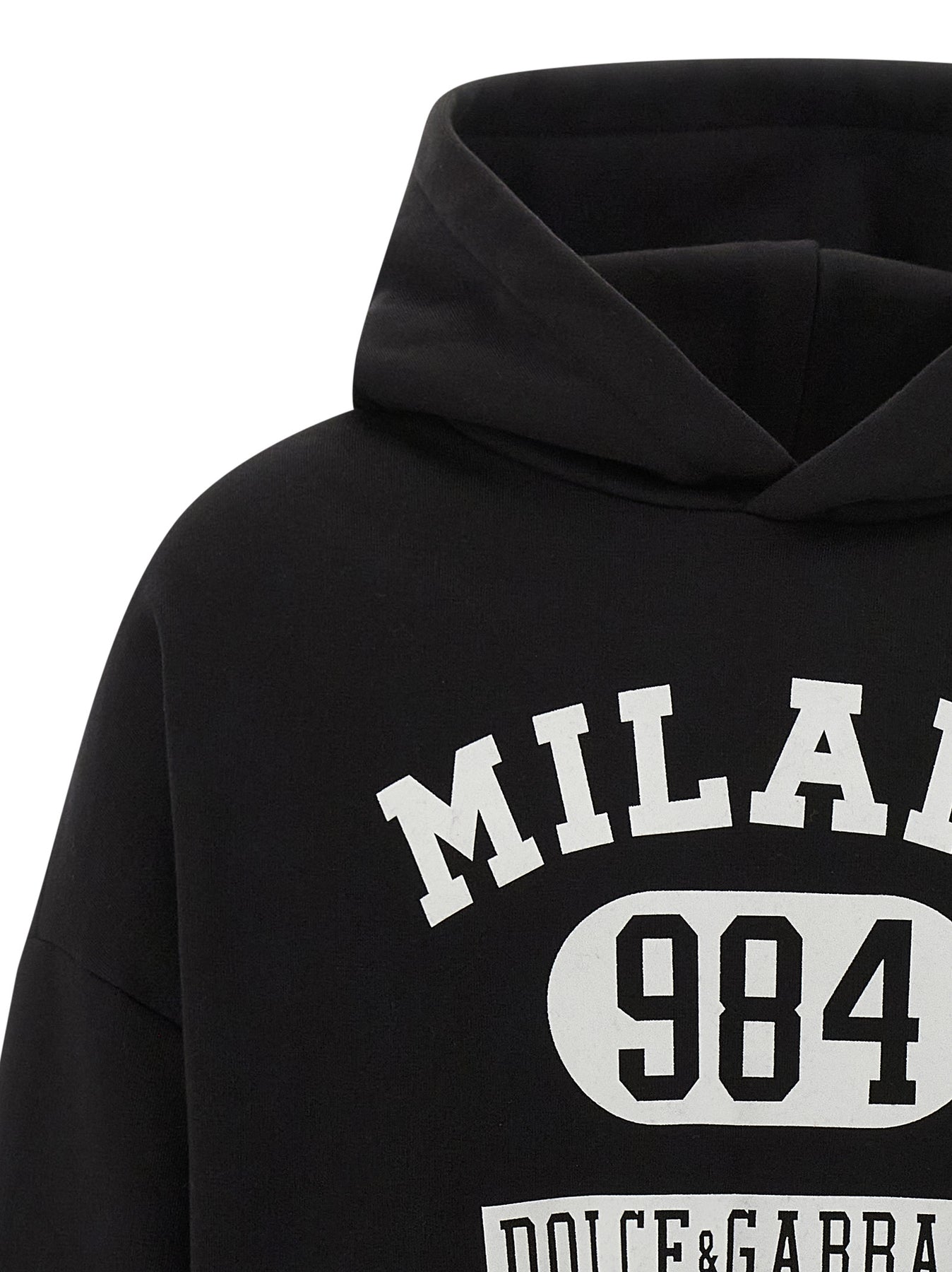 Dolce & Gabbana Flocked Print Hoodie Sweatshirt - White/Black | bbf0b382eb5c92eabb40ab2f4a3670fd60c7f543