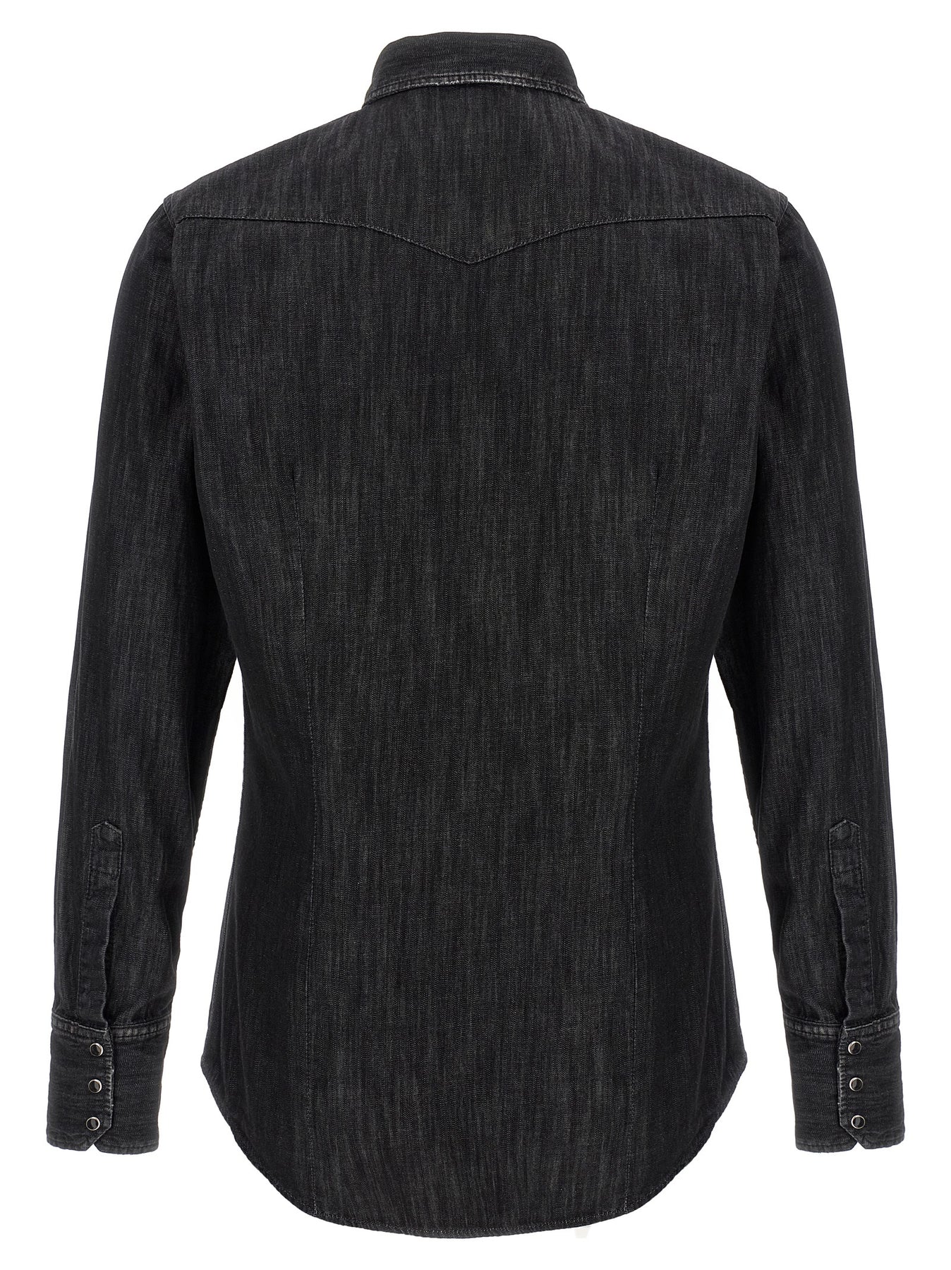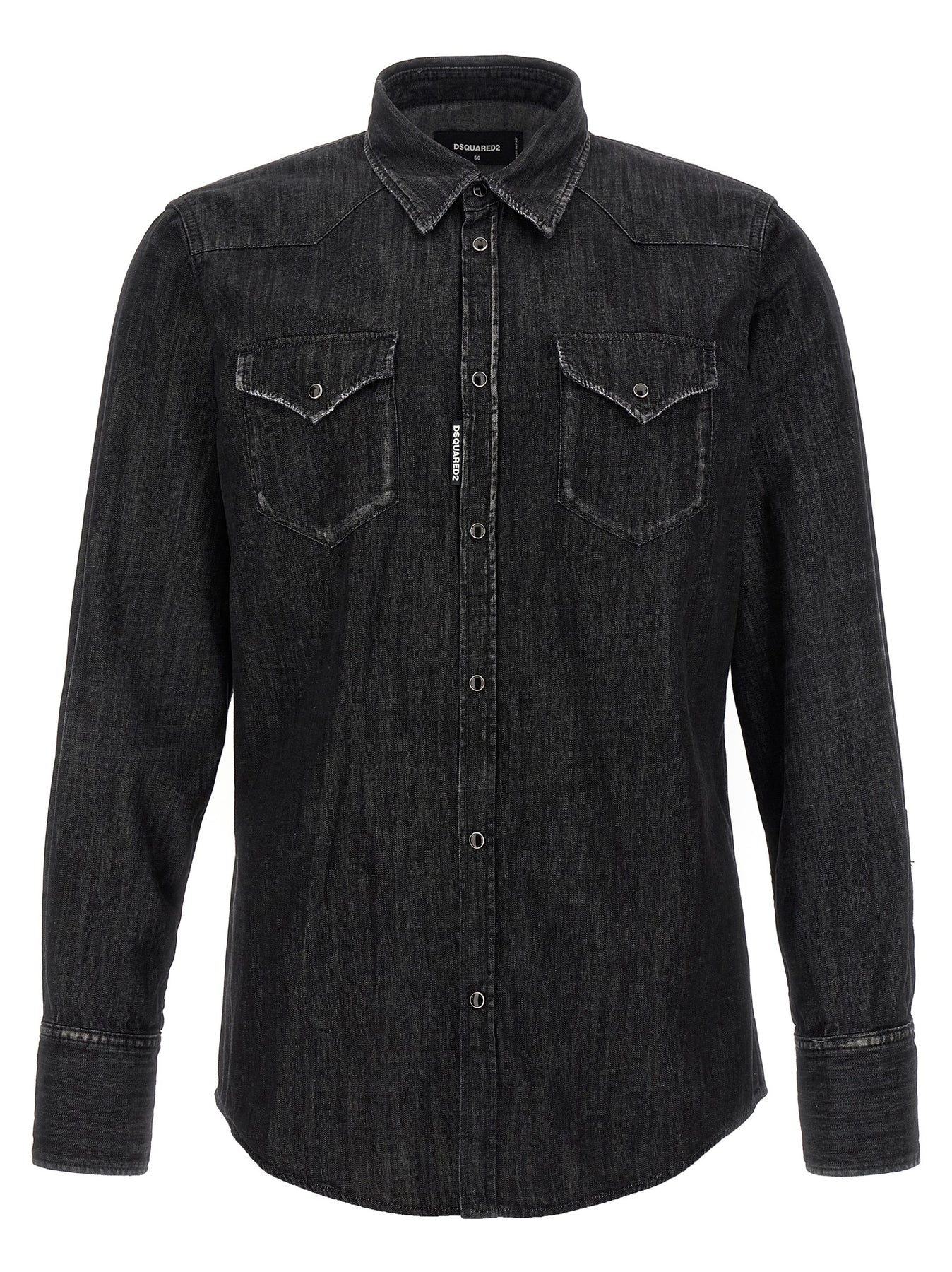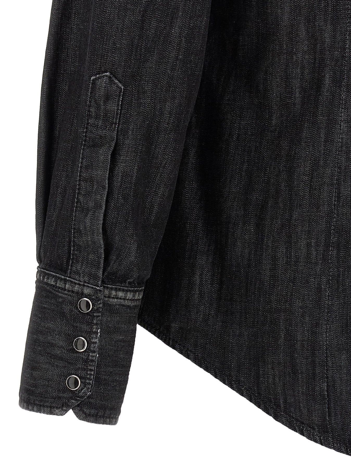 'Classic Western' cotton denim shirt with used-effect details, snap button closure, double chest pocket, long cuffed sleeves.