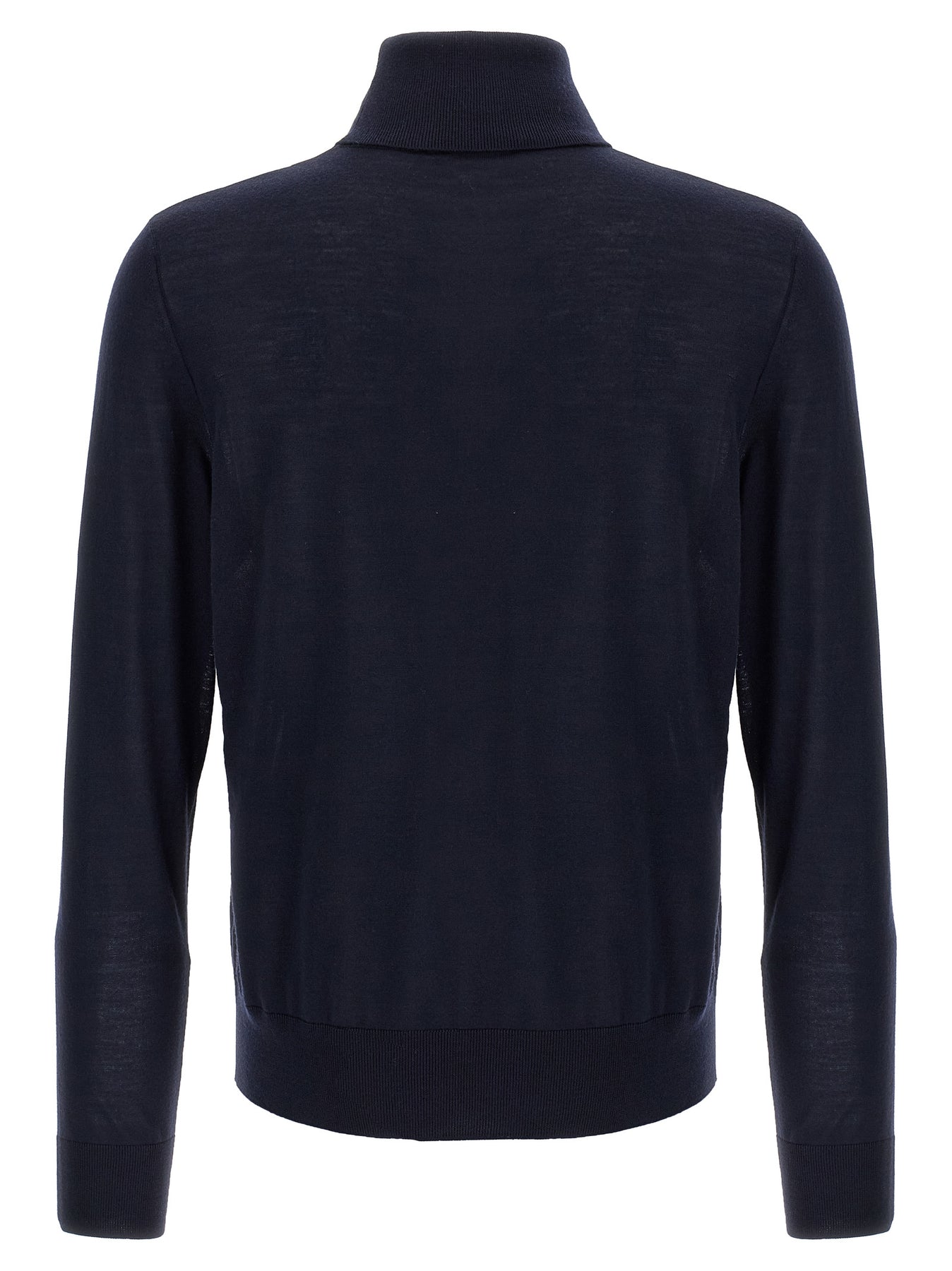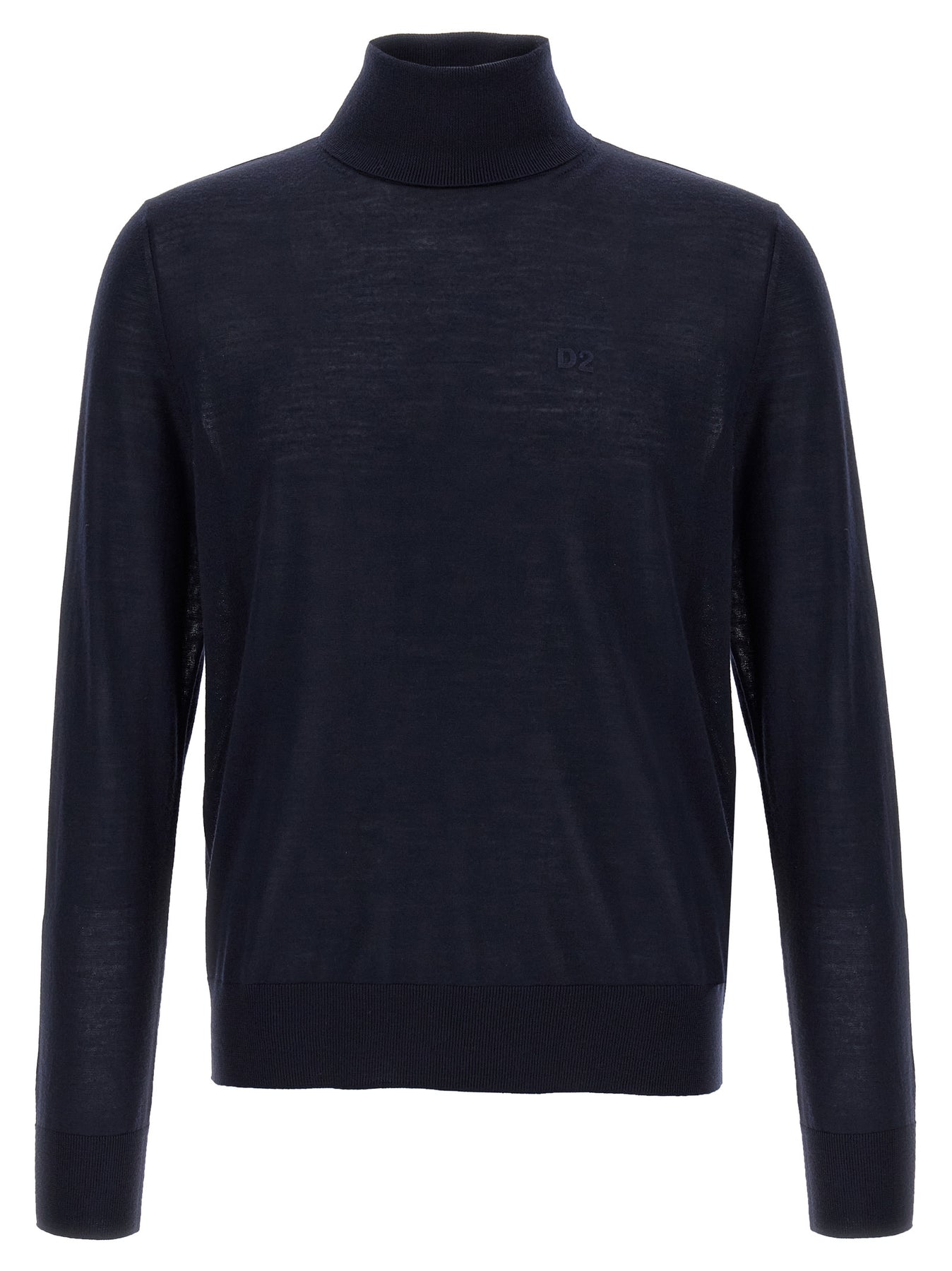 'D2' thin wool turtleneck sweater with front logo embroidery, long cuffed sleeves.