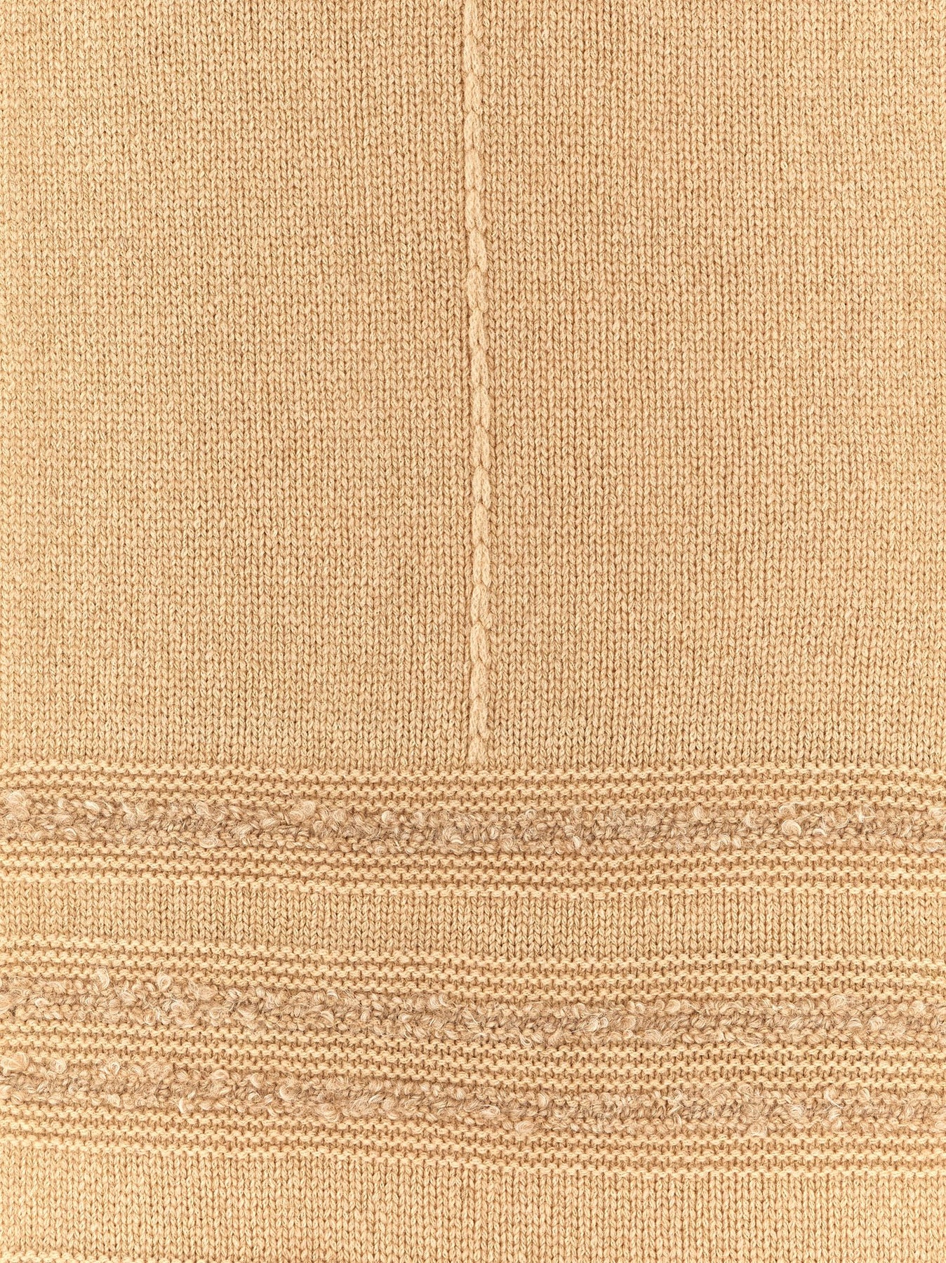 Scarf in camel wool and alpaca blend with bouclé inserts and fringes.