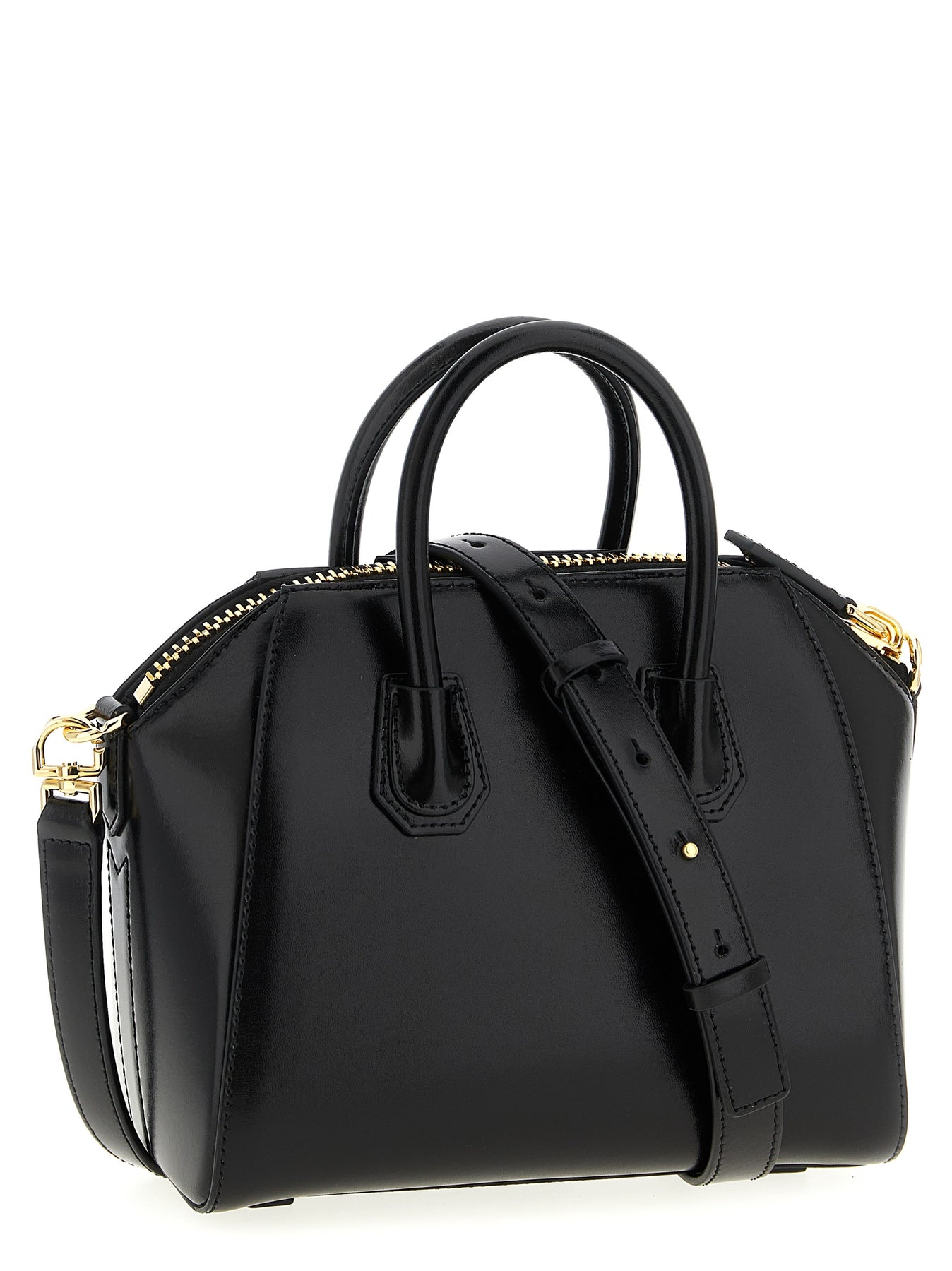 Solid color 'Antigona' mini handbag in 'Box' leather with silver hardware, leather handles, removable shoulder strap.