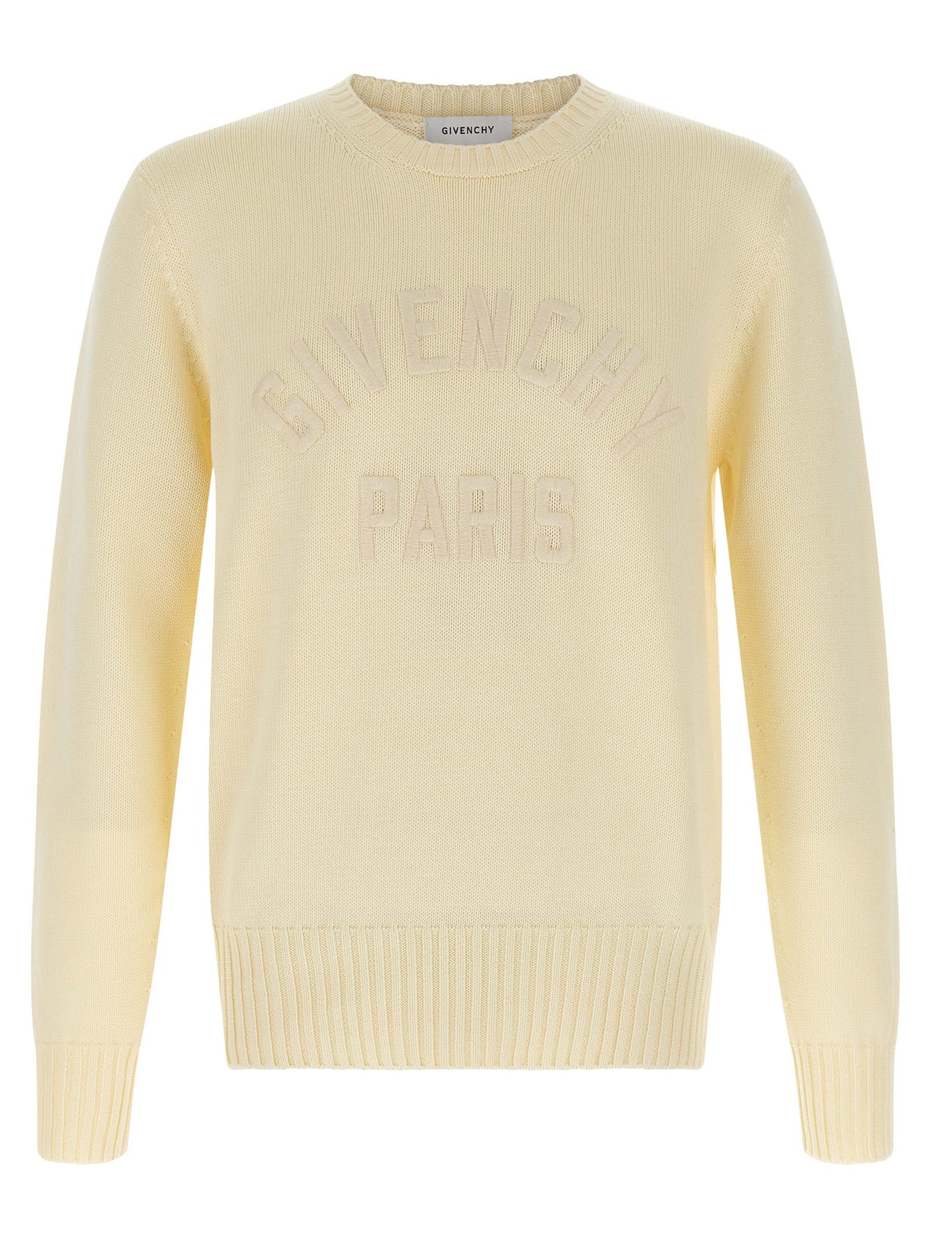 Cotton crewneck sweater with tone-on-tone embroidered front logo, long cuffed sleeves.