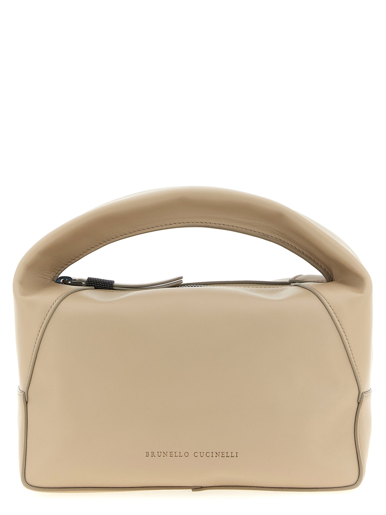 Hobo Duo' calf leather bag, suede lining, zip closure and 'Monile' detail puller