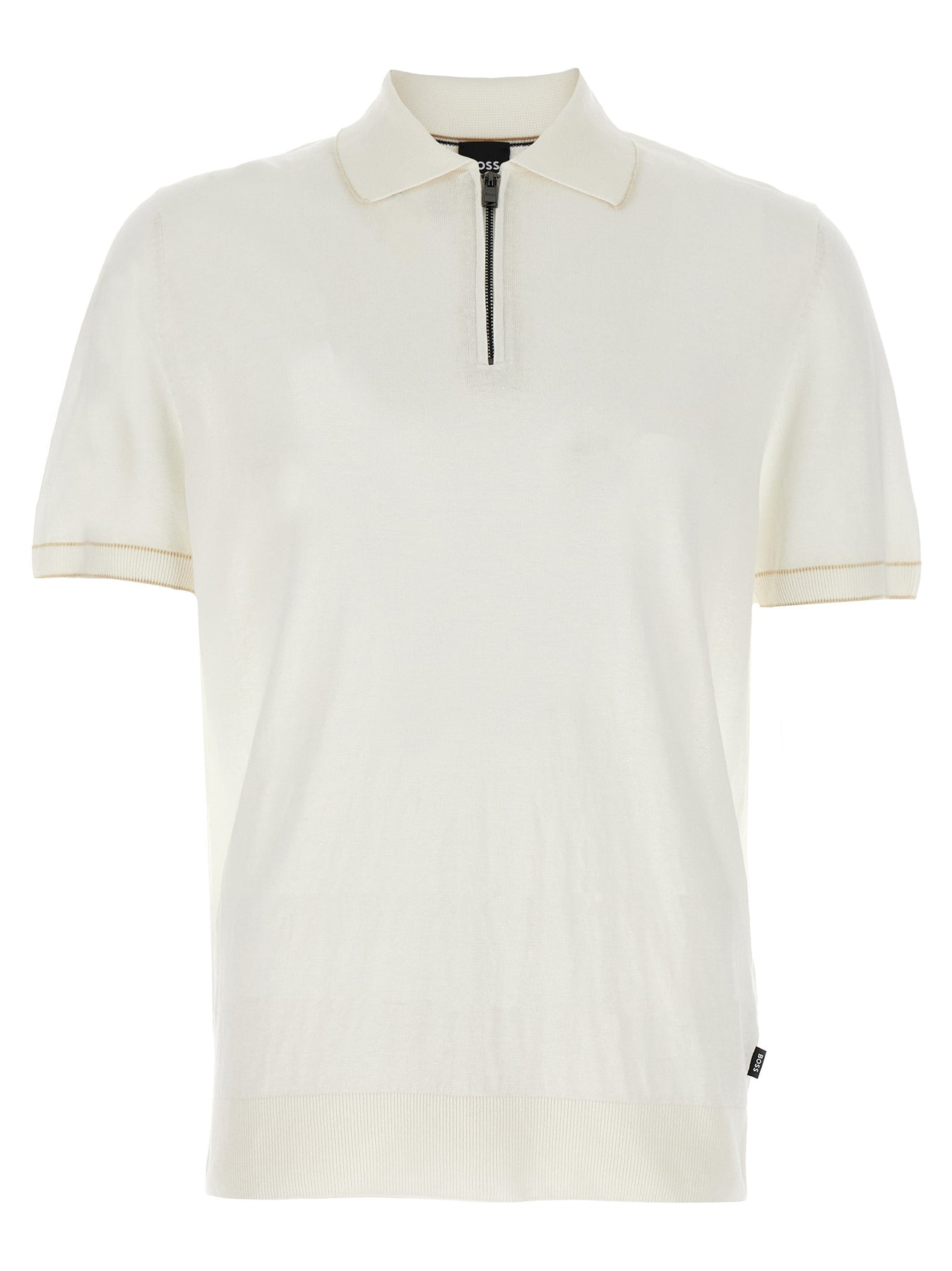 'H-Jiovanotto' polo shirt in linen and viscose blend with contrast details, collar, half zip, short sleeves.