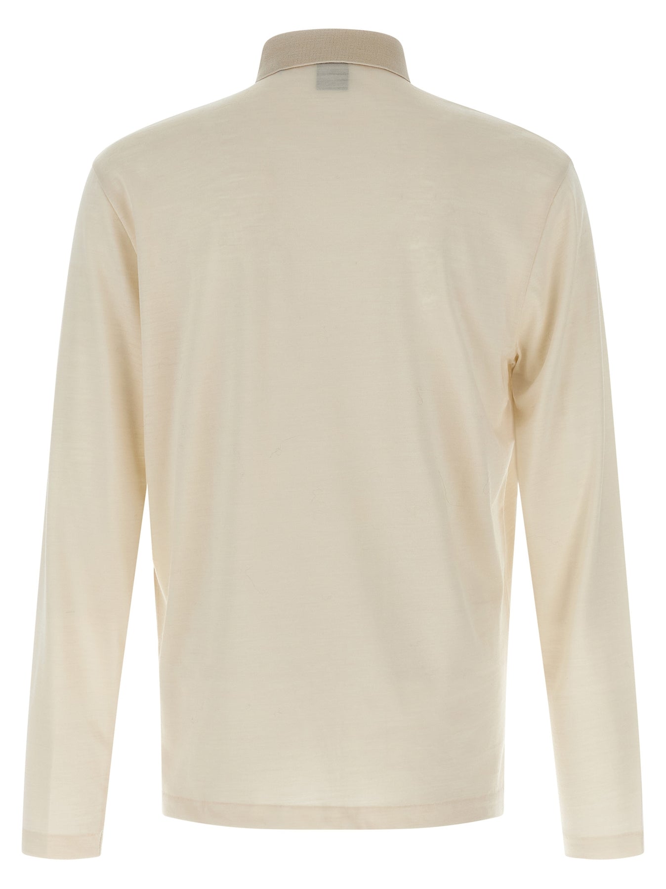 'H-Pado 110' polo shirt in light wool with collar and buttons, long sleeves.