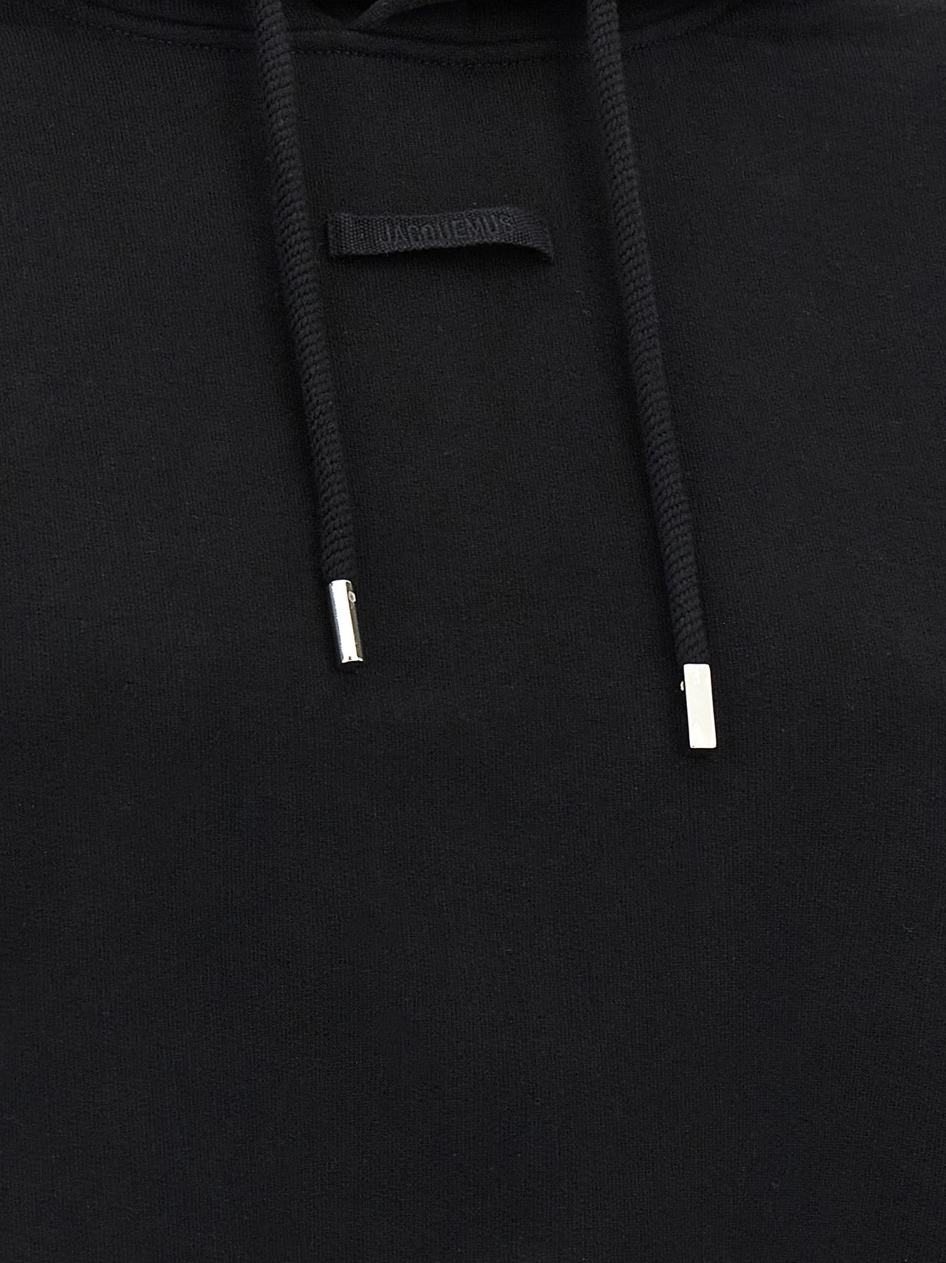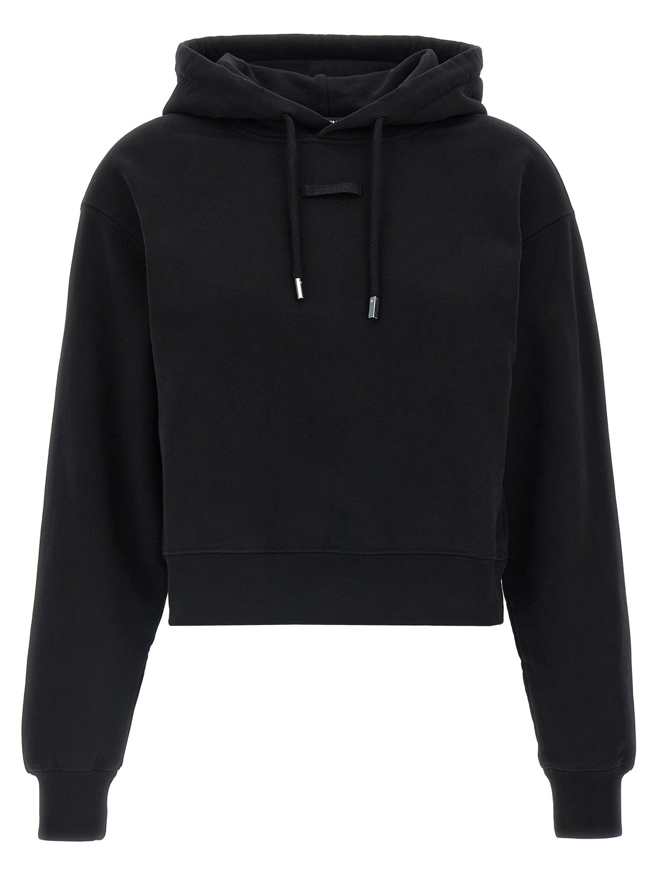 'Le Hoodie Gros-Grain' hoodie in lightly fleece cotton, tone-on-tone logo patch on the front, crop style, long sleeves with cuffs and dropped shoulders.
