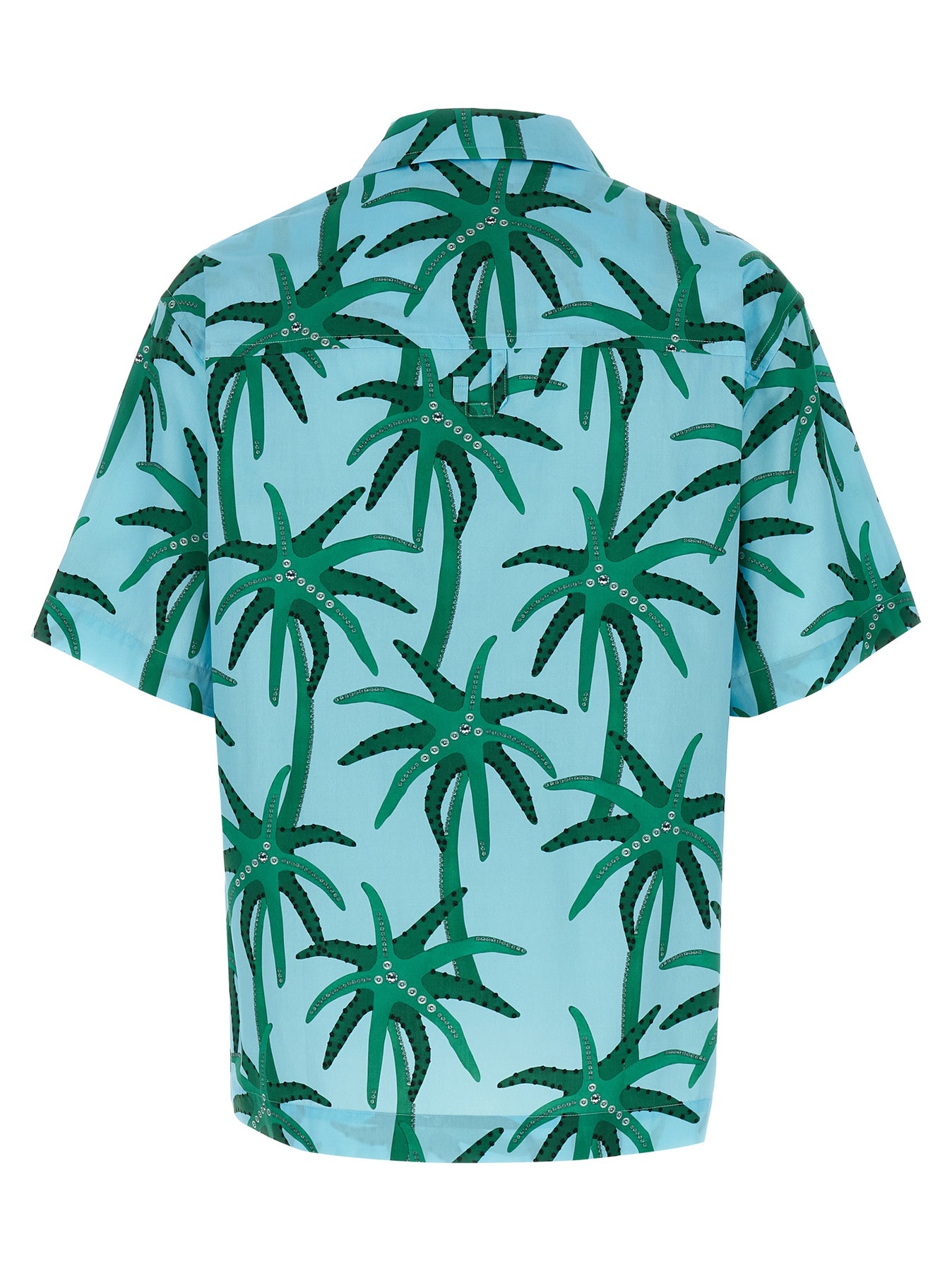 'La Chemise Jean' all-over print cotton poplin shirt, front logo embroidery, button closure, short sleeves with dropped shoulders.