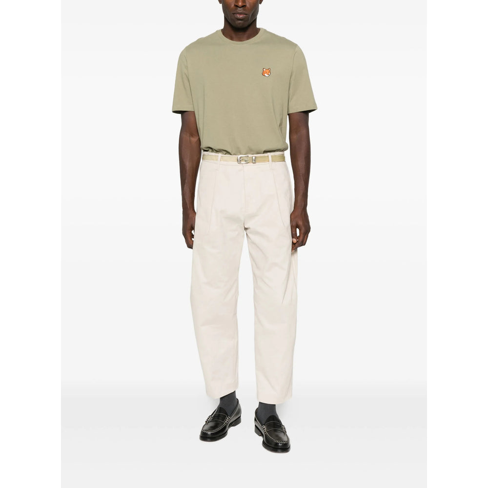 laurel green short sleeves crew neck embroidered fox head straight hem