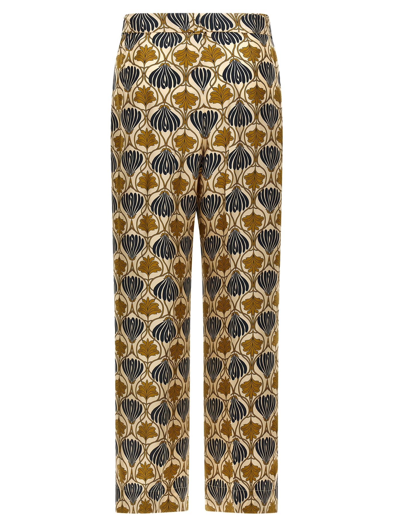 'Timec' all-over print silk trousers, cropped model with straight leg, elastic waistband and zip and hook closure, removable and knotted belt at the waist, pockets.