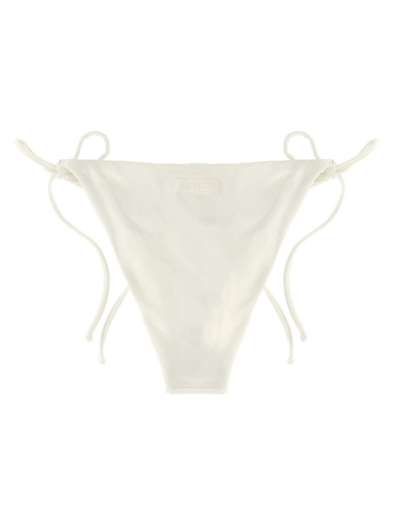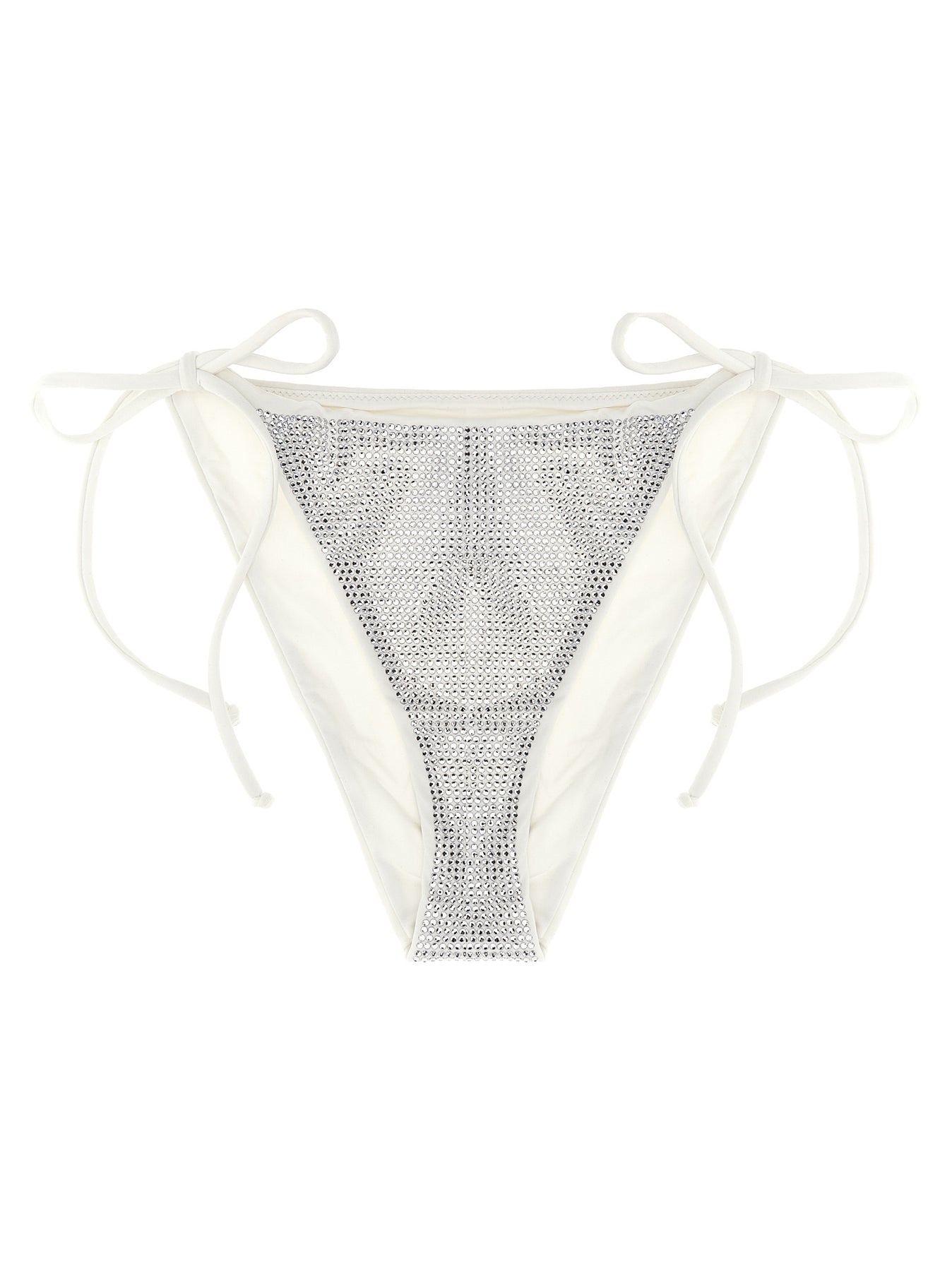High-cut Virgo bikini bottoms in stretch fabric with rhinestone appliqué on the front and lacing on the sides.