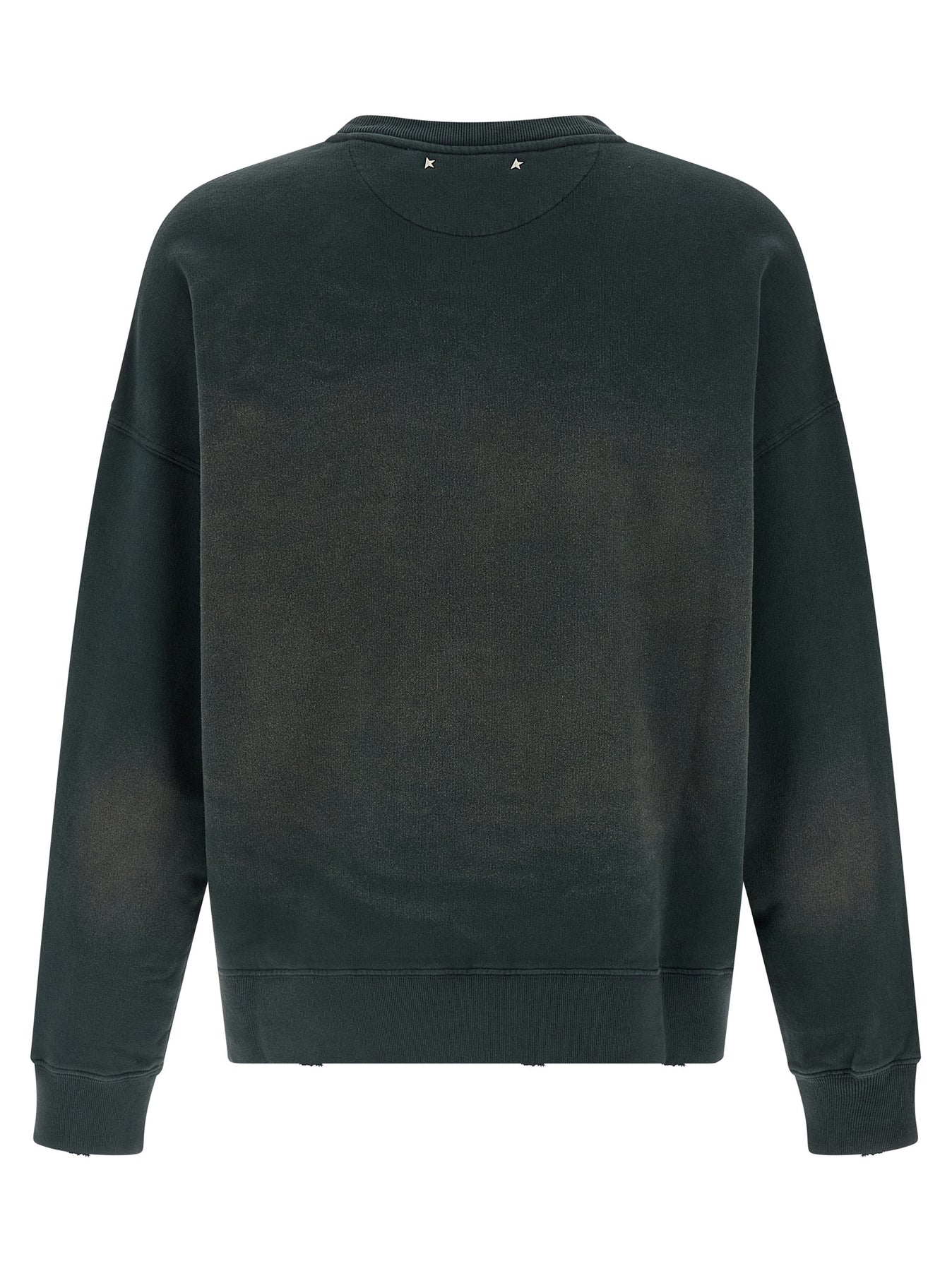'Martin' dyed and used brushed cotton sweatshirt, tone-on-tone logo embroidery on the front, crew neck, long sleeves with cuffs and dropped shoulders.