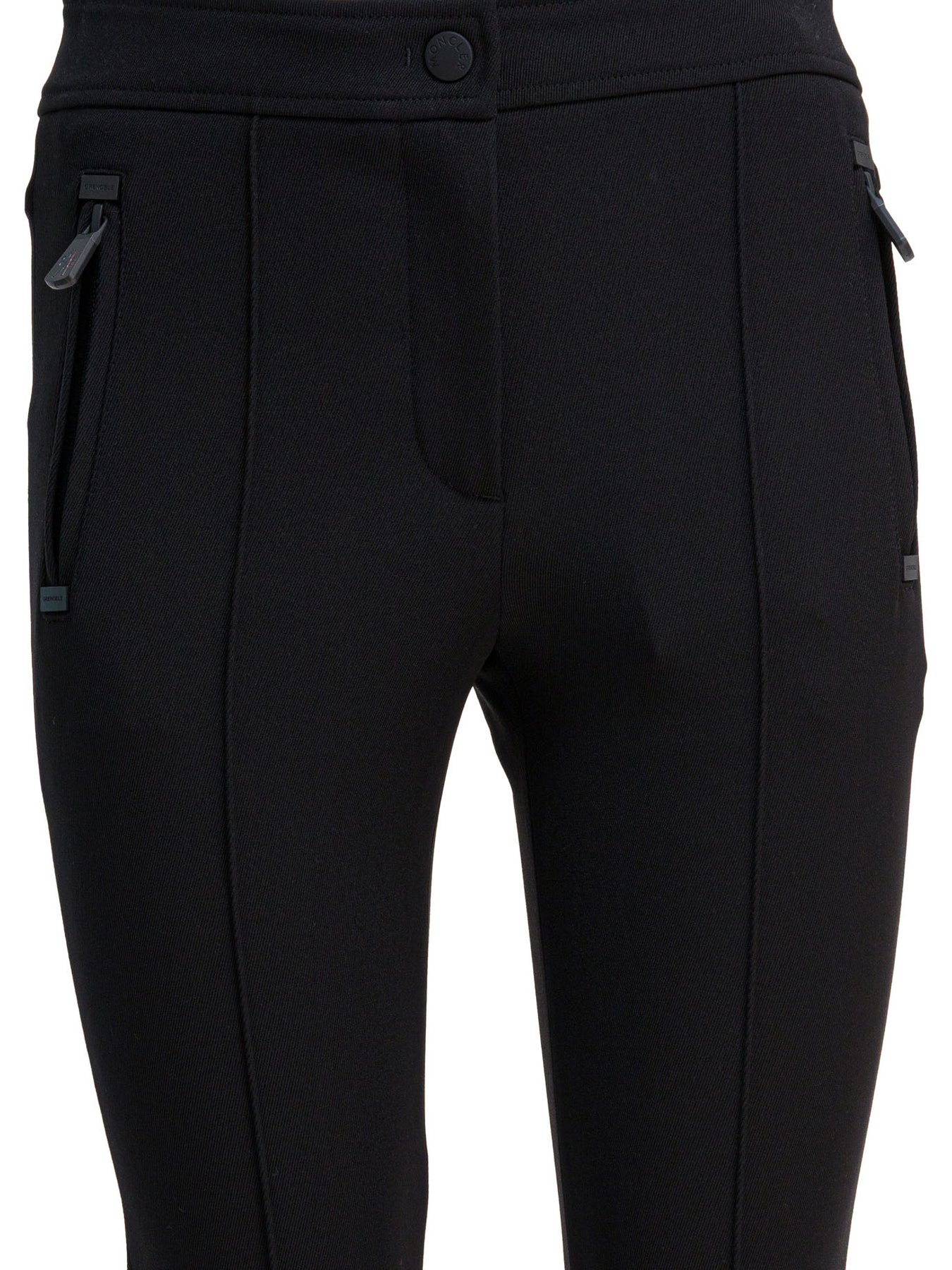 Moncler Grenoble nylon pants with a mid-rise and straight construction. Nylon main fabric articulated with viscose fibers and elastane for flexibility. Basic silhouette incorporates a front zipper and snap-button closure. Zippered side pockets at the front and raised back at the bottom waist complete the structure. Embroidered logo detail on the back. || - Embroidered logo on the back - Mid-rise waist - Front zippered side pockets - Front zipper and snap button closure - Raised back at the bottom of the waist - Slim fit