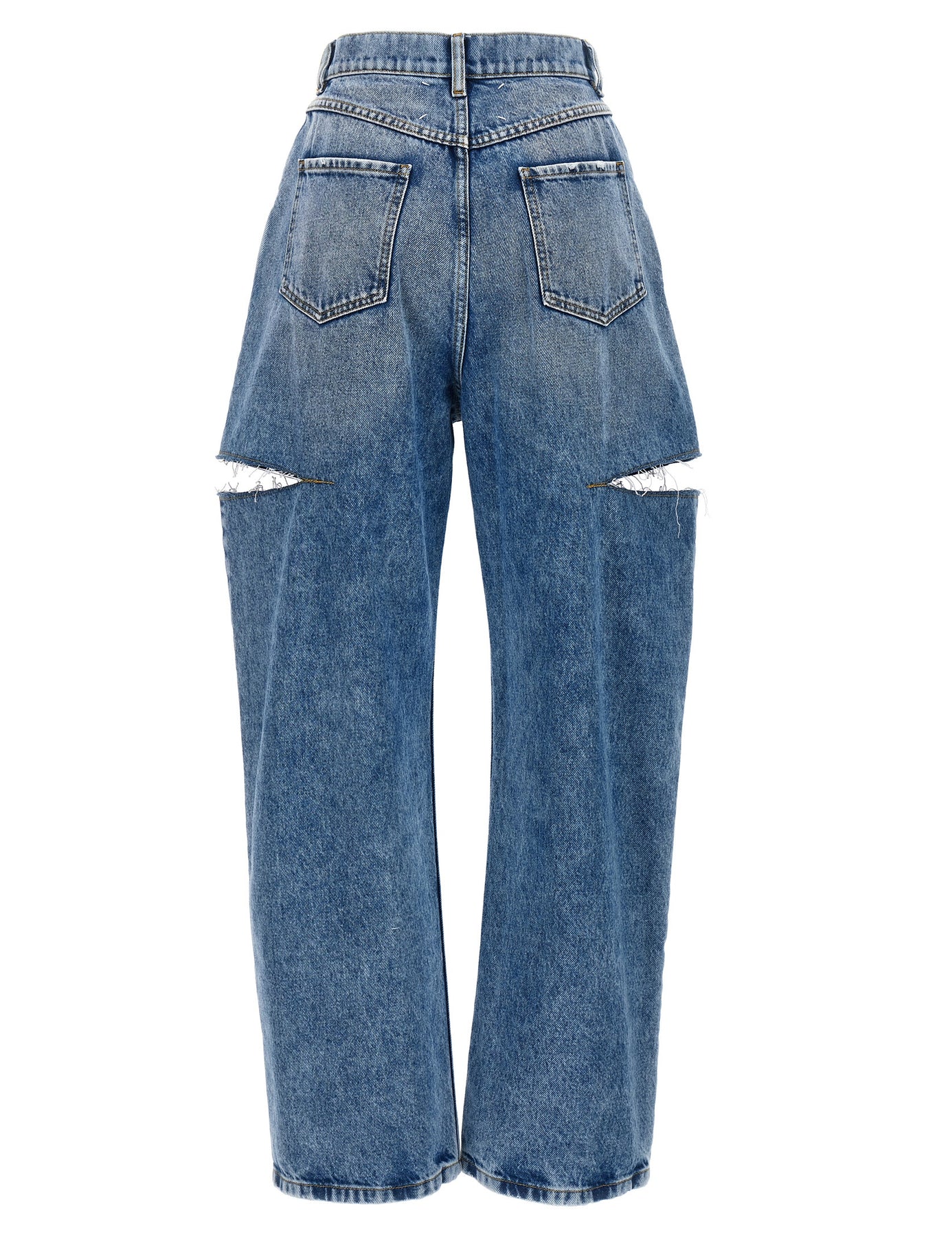 Cotton denim jeans with side cut-out details, straight leg, zip and button closure, five pockets.
