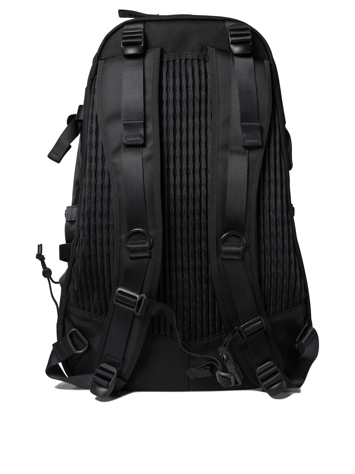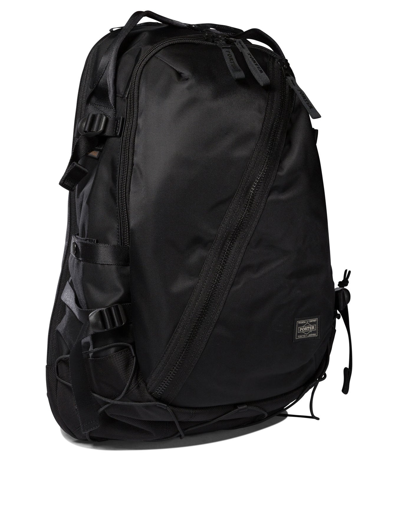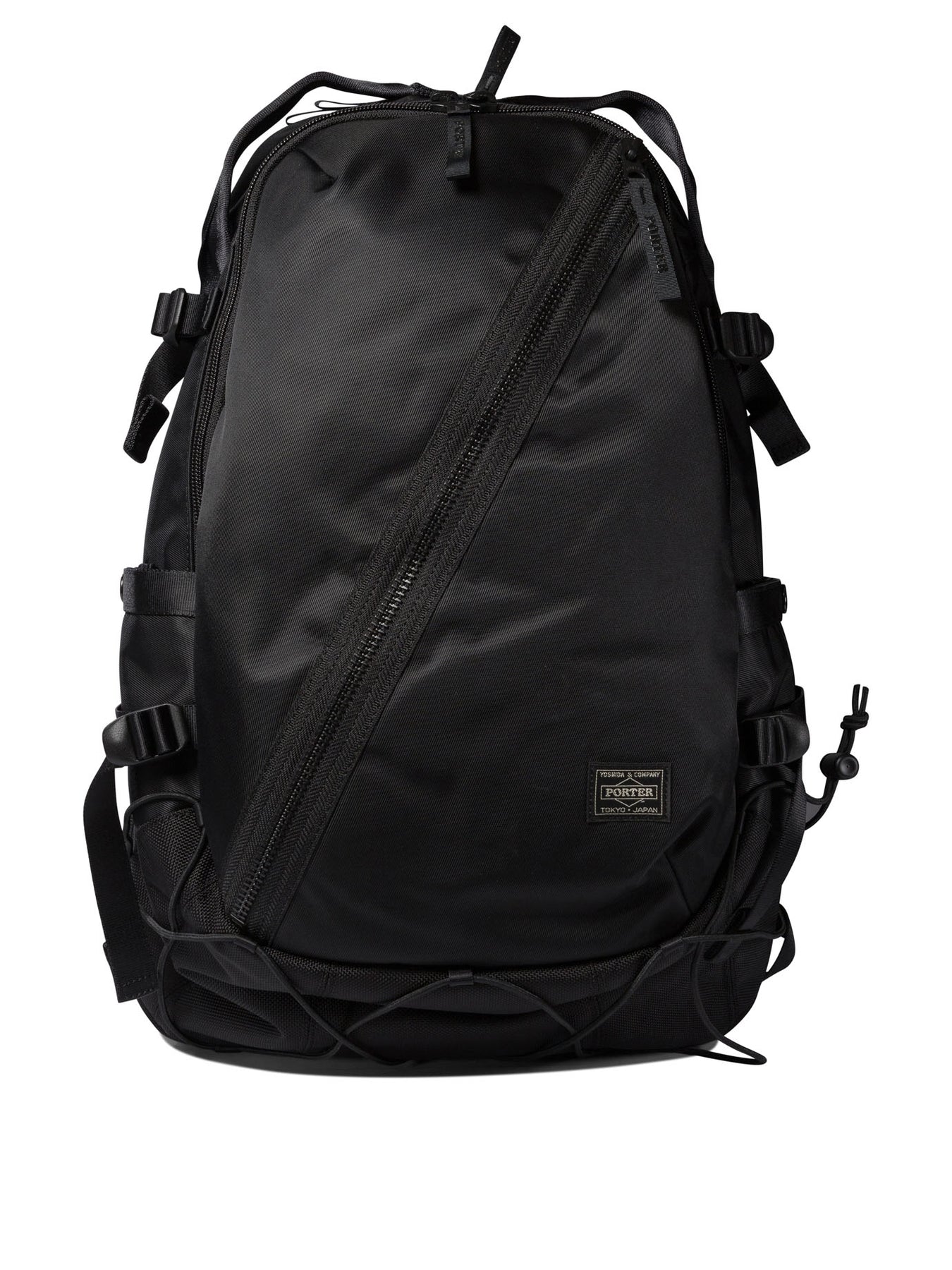 Backpack "Things S" Porter-Yoshida & Co, constructed of glossy nylon twill treated on the surface with Teflon for stain and water protection. Two-layer construction with three-dimensional silhouette and profile defined by diagonal zippers. The bottom is made of Cordura 1680D ballistic nylon coated with urethane. The back uses Cubic Eye Pique Light, a breathable, cushioning and quick-drying honeycomb material. Top handles aid carry and access. || - Interchangeable elastic drawstring - Front pocket with internal gusset and zipper closure - Large main compartment and padded pocket for laptops up to 14 inches - Interior mesh pocket with zipper closure - Chest strap with FIDLOCK magnetic closure - Heat, abrasion and tear resistant materials