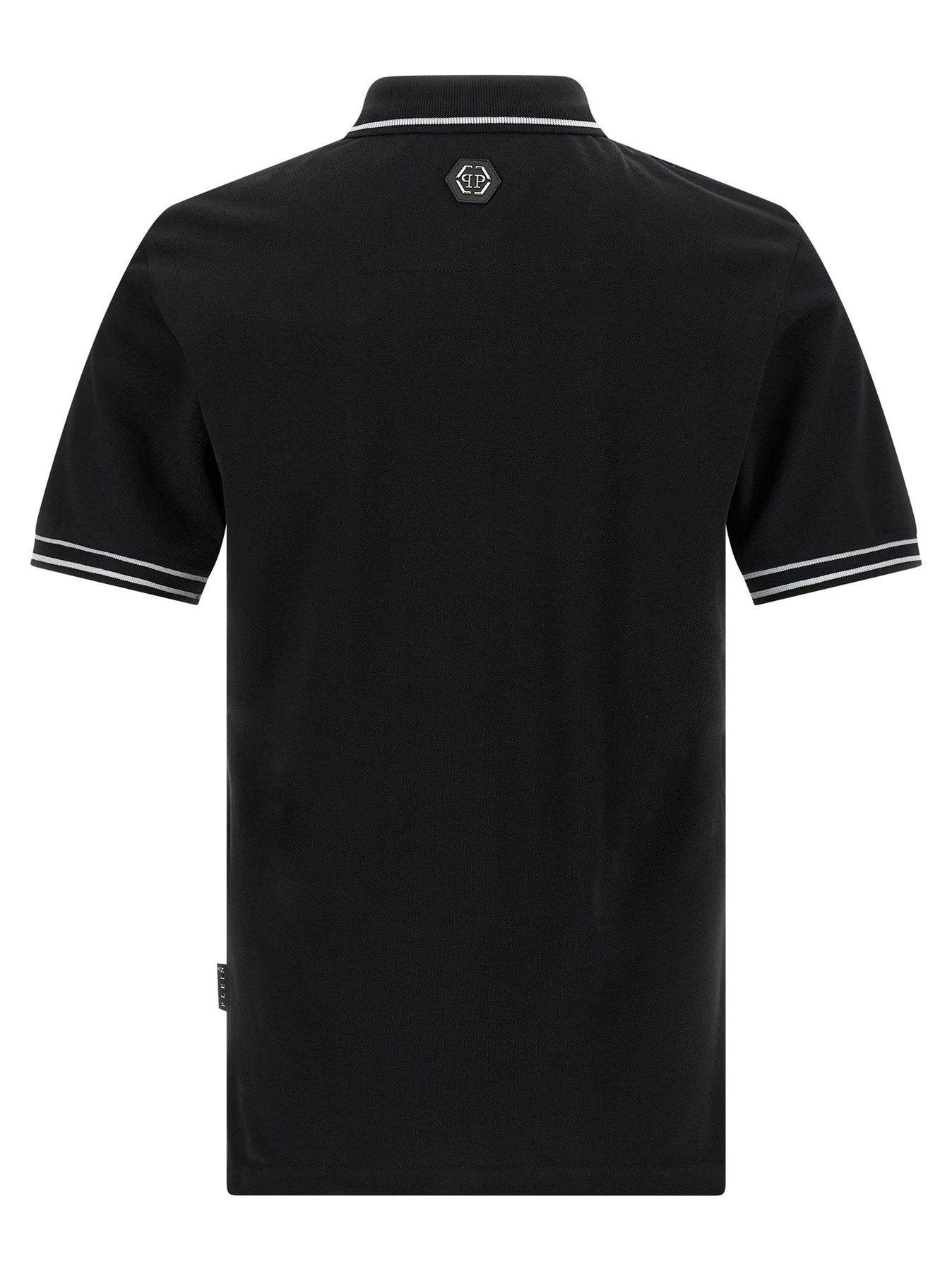Piqué cotton polo shirt, front logo patch 'Skull & Bones' collar, 3 button closure, short sleeves.