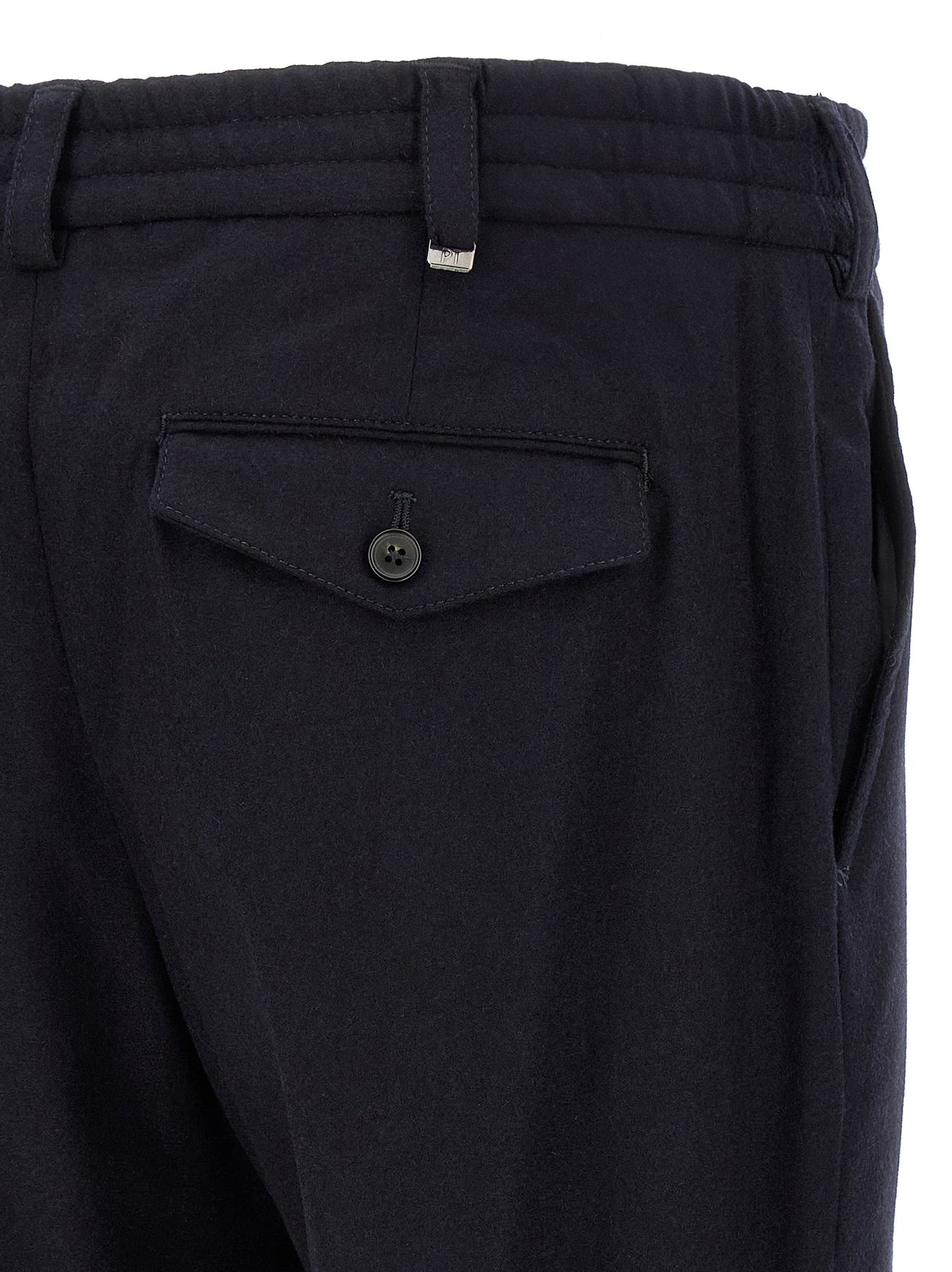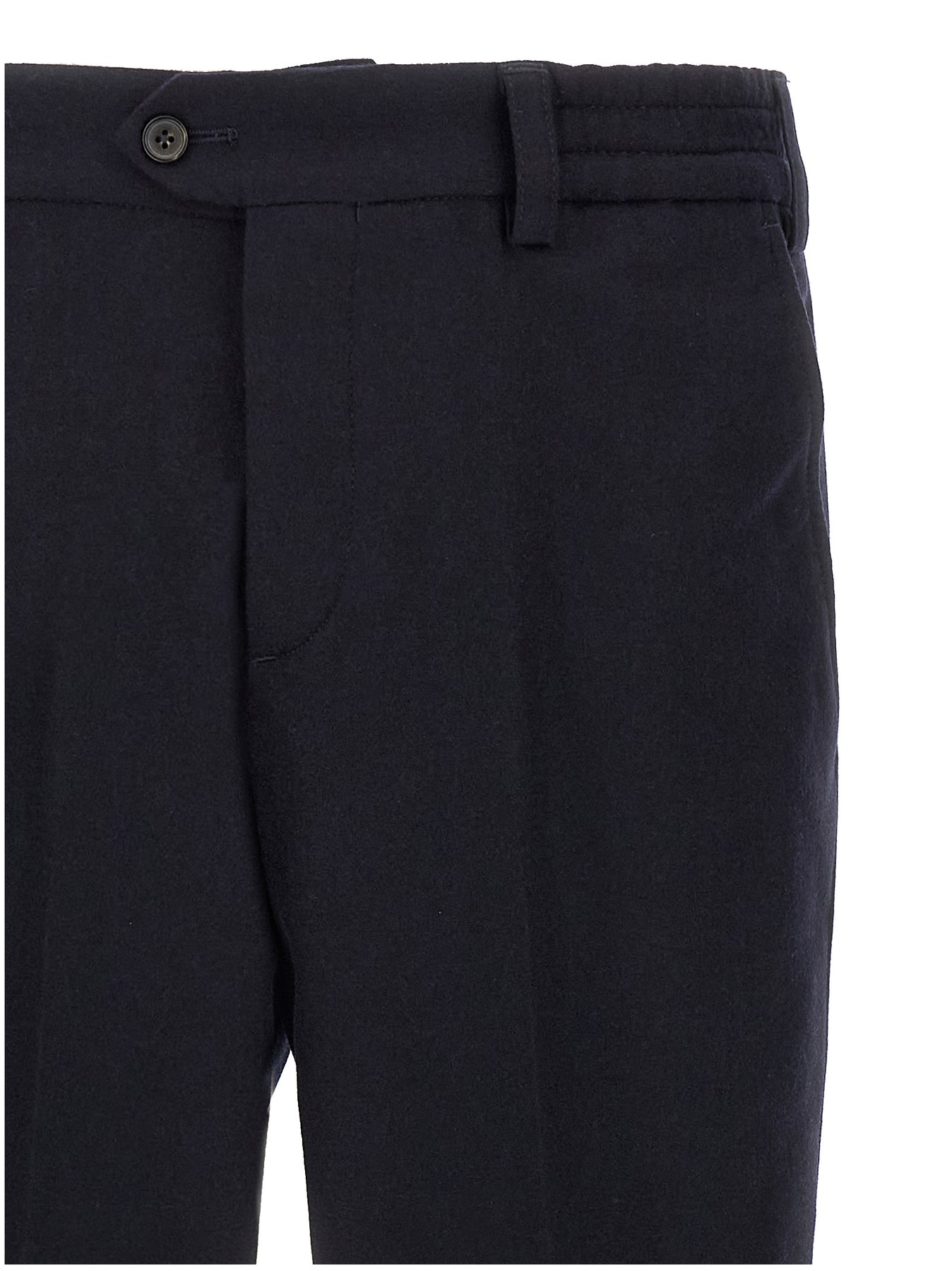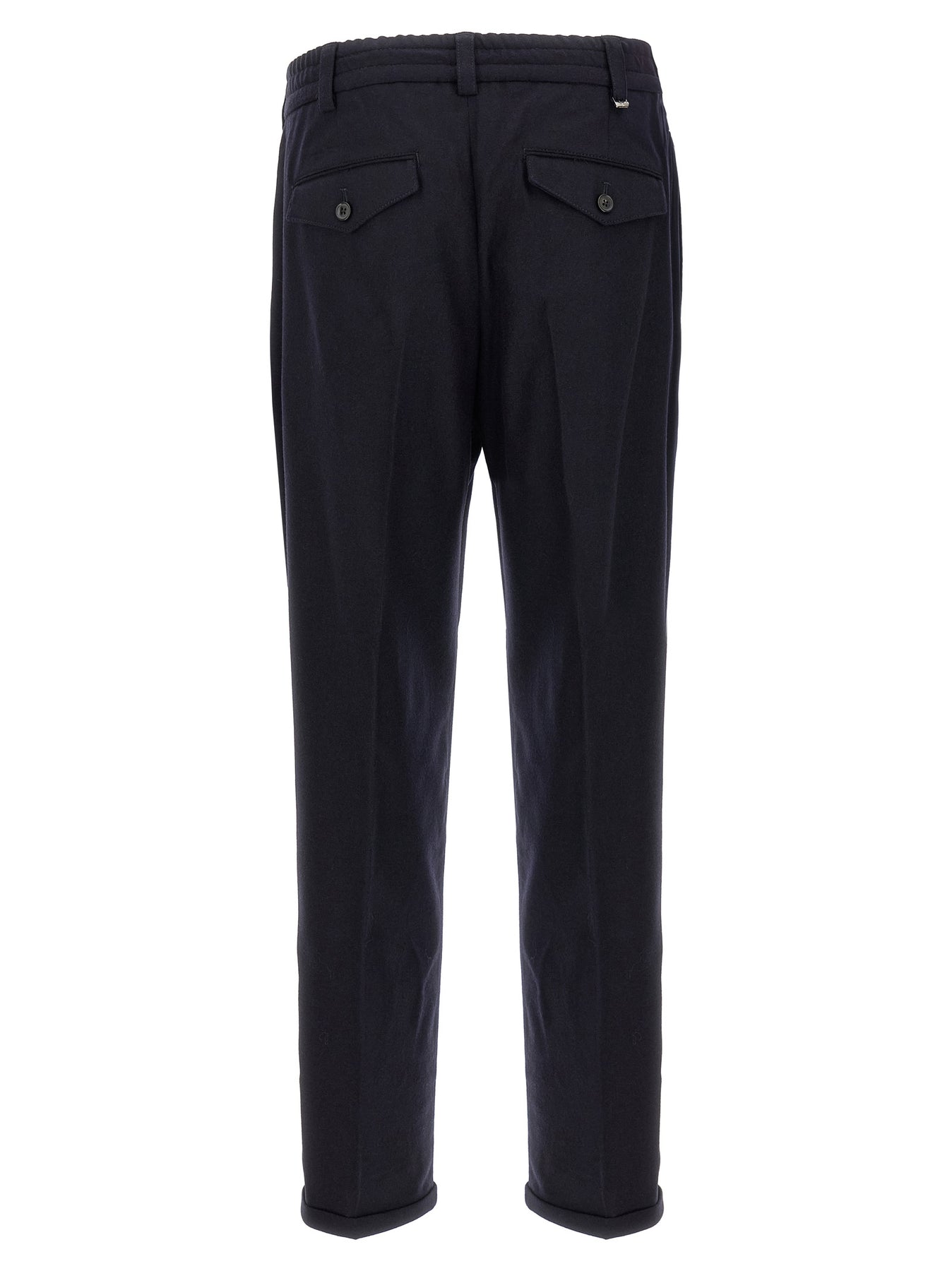 'The Rebel' cool wool pants, elastic waistband, button closure, pockets, straight leg, stretched pleat, turn-up hem.