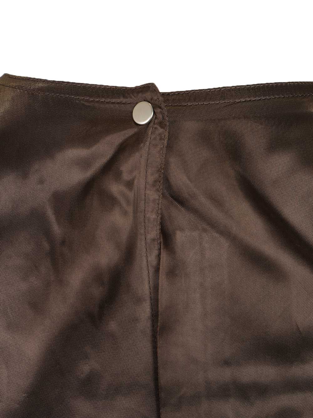 Long-sleeved jumpsuit with deep V-neck and snap button fastening on the back.