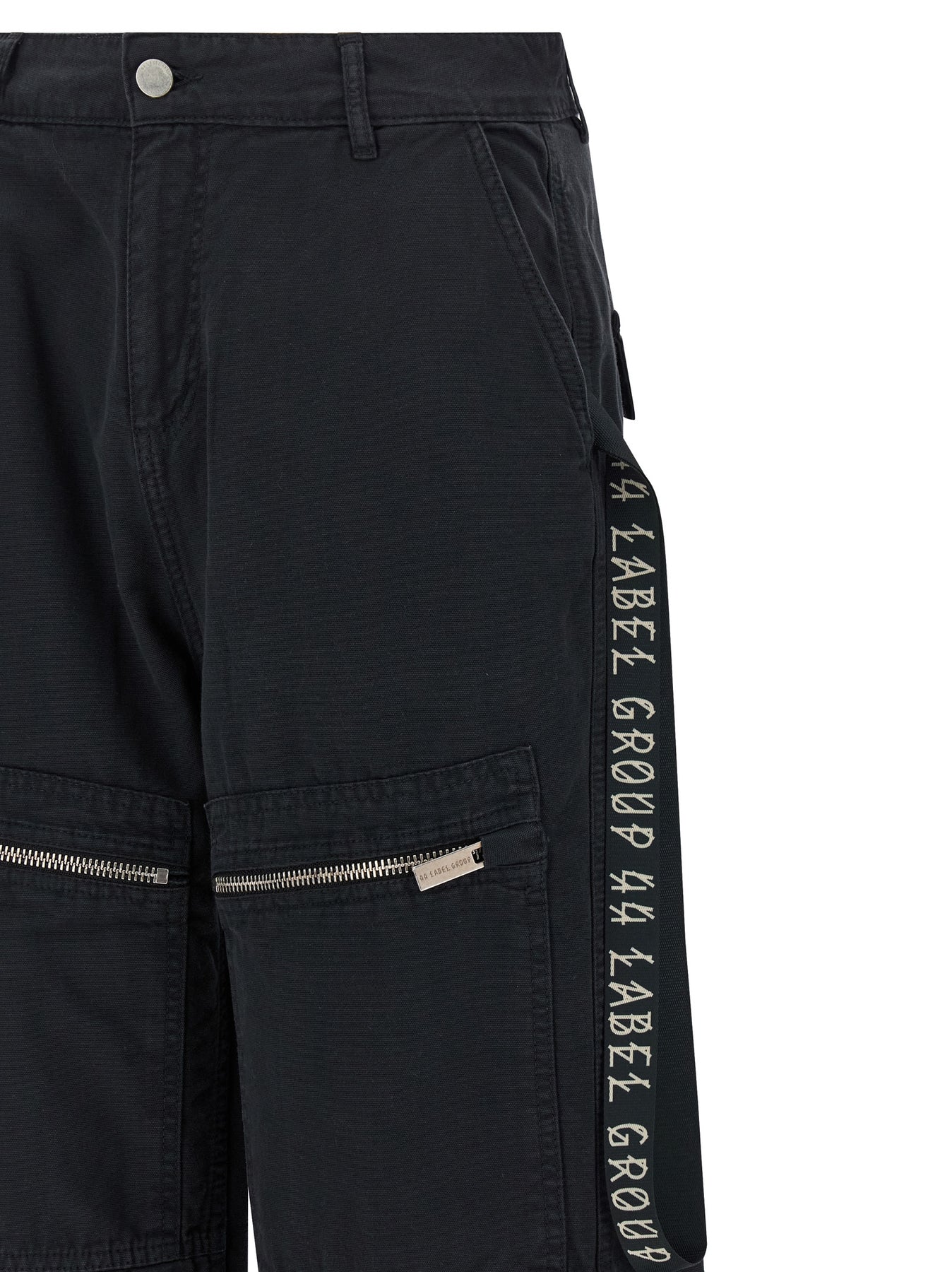 'Mech' cotton canvas pants, front zip pockets, zip and button closure, back logo embroidery detail.