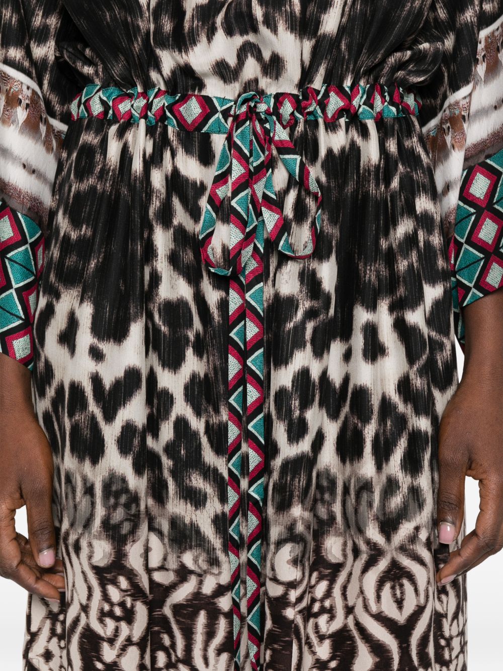 black ang beige multicolored geometric print animal print tie fastening short sleeves gathered waist