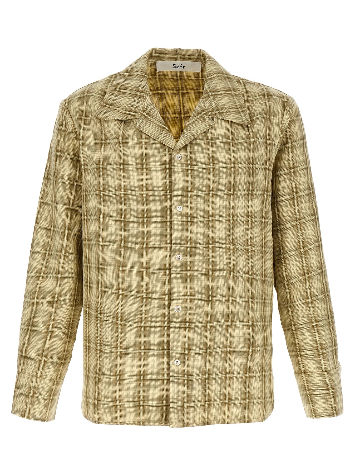 'Ignacio' shirt in structured cotton and linen twill with check print, front button closure, long cuffed sleeves.