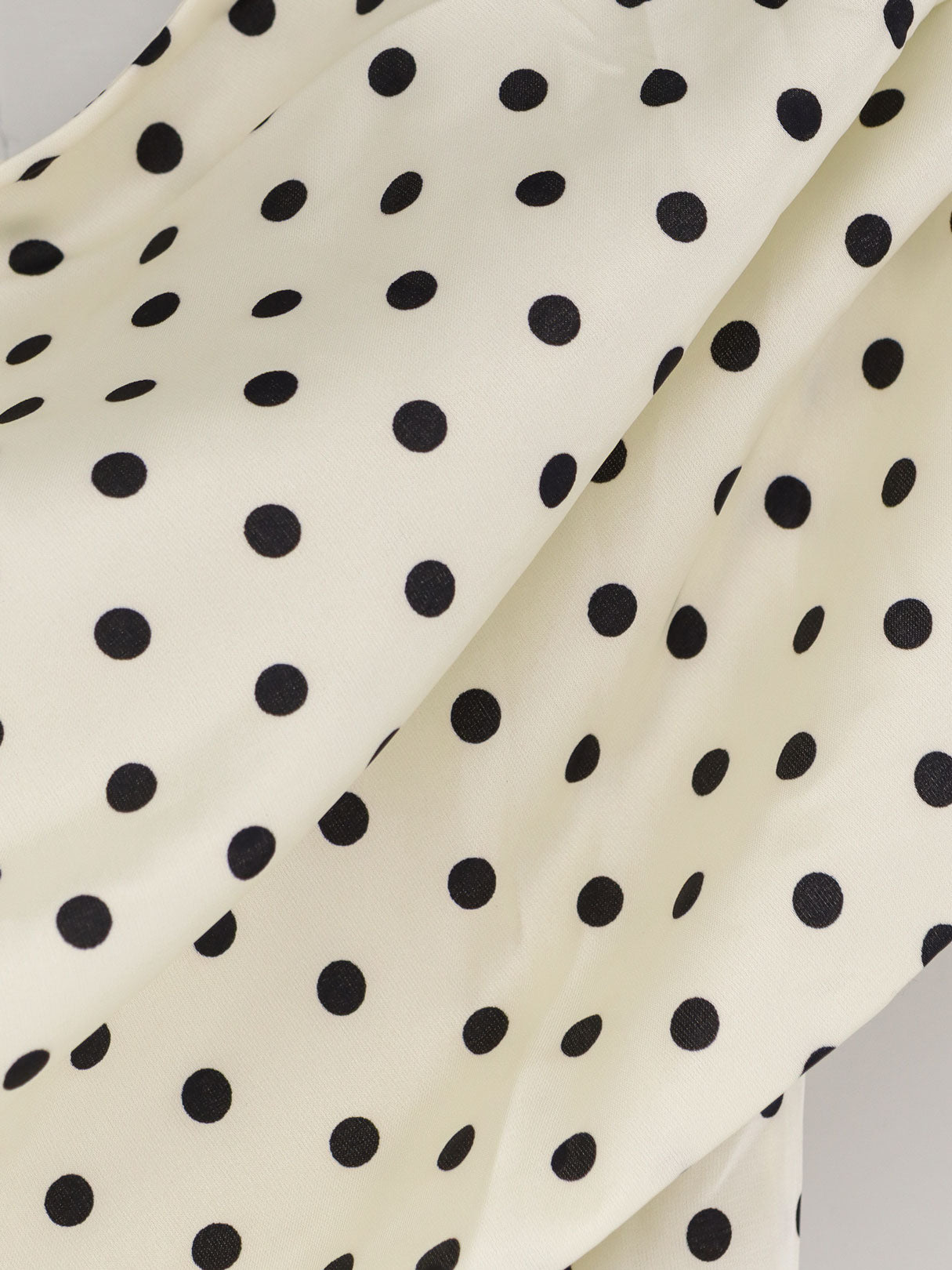 Side zip closure Sleeveless Bow detail with train Polka dot pattern 95% polyester 5% elastane Lining: 100% polyester SKU: RS26002SCCREAM