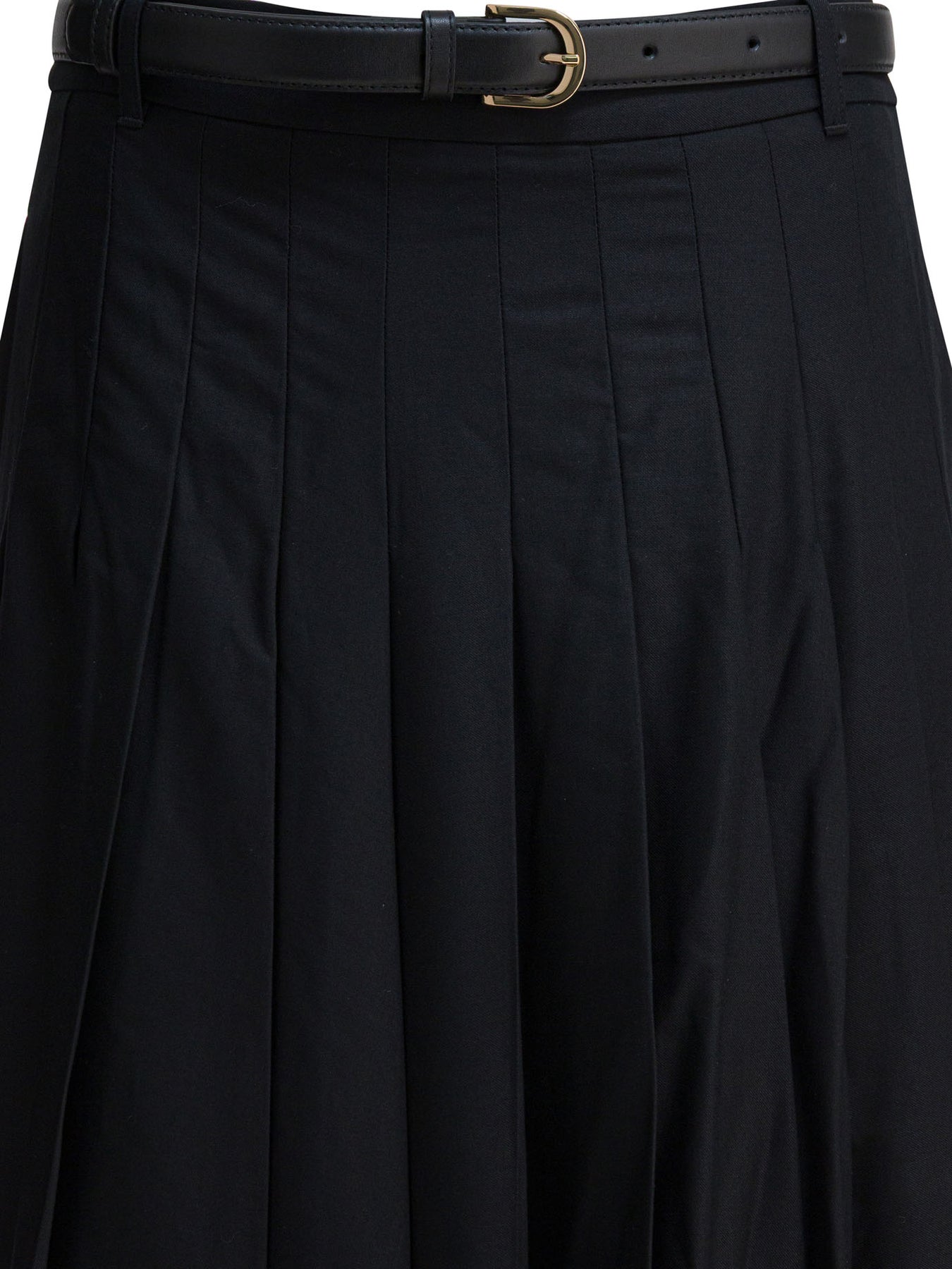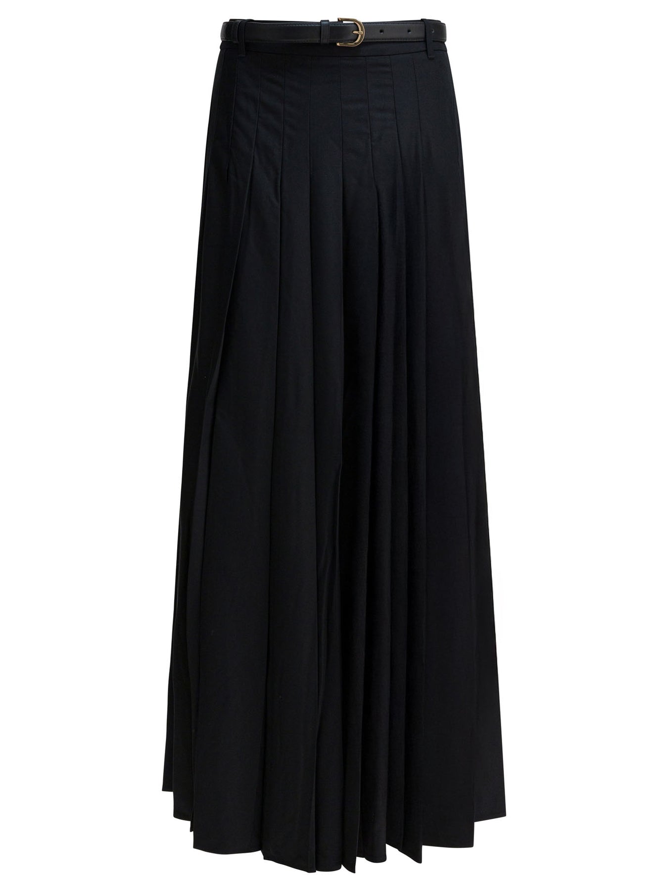 Self-portrait pleated long skirt made of twill with fitted construction and straight silhouette. Pleated workmanship throughout, with side slit integrated into the construction. Concealed zipper closure positioned to the side. Removable belt attached at waist. Main material features reduced level of stretch to maintain shape. Construction designed for a structured, regular fit, free of additional decorative details. || - Solid color - Pleated skirt - High waist - Side slit - Concealed zipper closure on the side - Removable belt - Regular fit