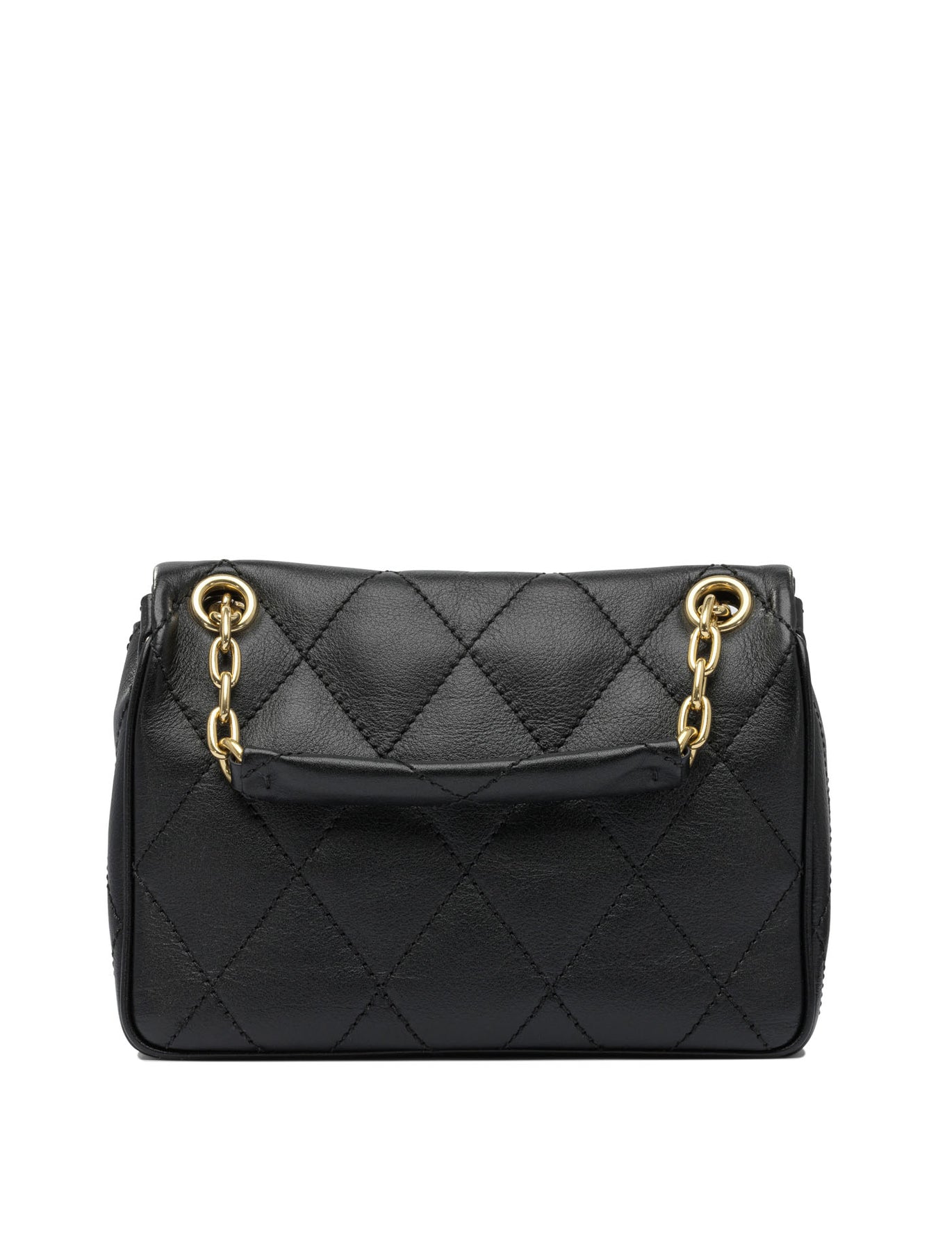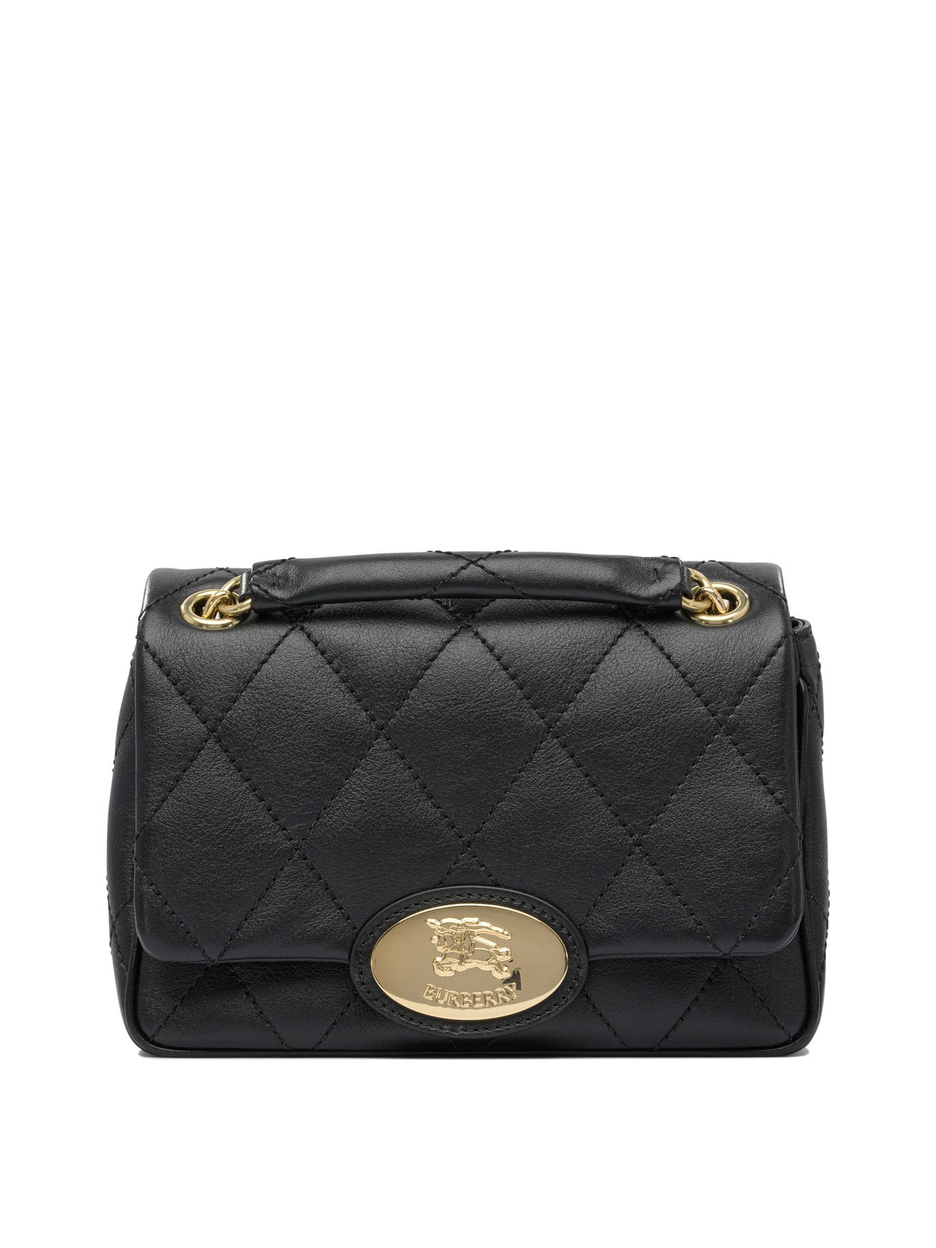 Burberry "Strand" crossbody bag constructed from quilted calfskin leather treated for a soft, textured finish. The compact silhouette features a structured design with a fold-over flap, chain and leather shoulder strap, and brushed metal inserts. An engraved metal Knight Stamp sits on the front. The interior is finished in cotton with storage pockets. || - Textured-effect quilted calfskin leather. - Mixed chain and leather shoulder strap - Turn-around flap with magnetic closure - Inside pocket with zipper - Cotton lining - Hand-finished edges - Knight Stamp metal engraved on front