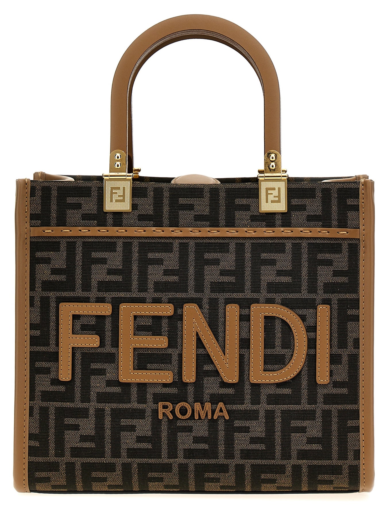 'Sunshine Small' shopping bag in FF jacquard fabric, leather details, rigid plexiglass handles, removable shoulder strap.