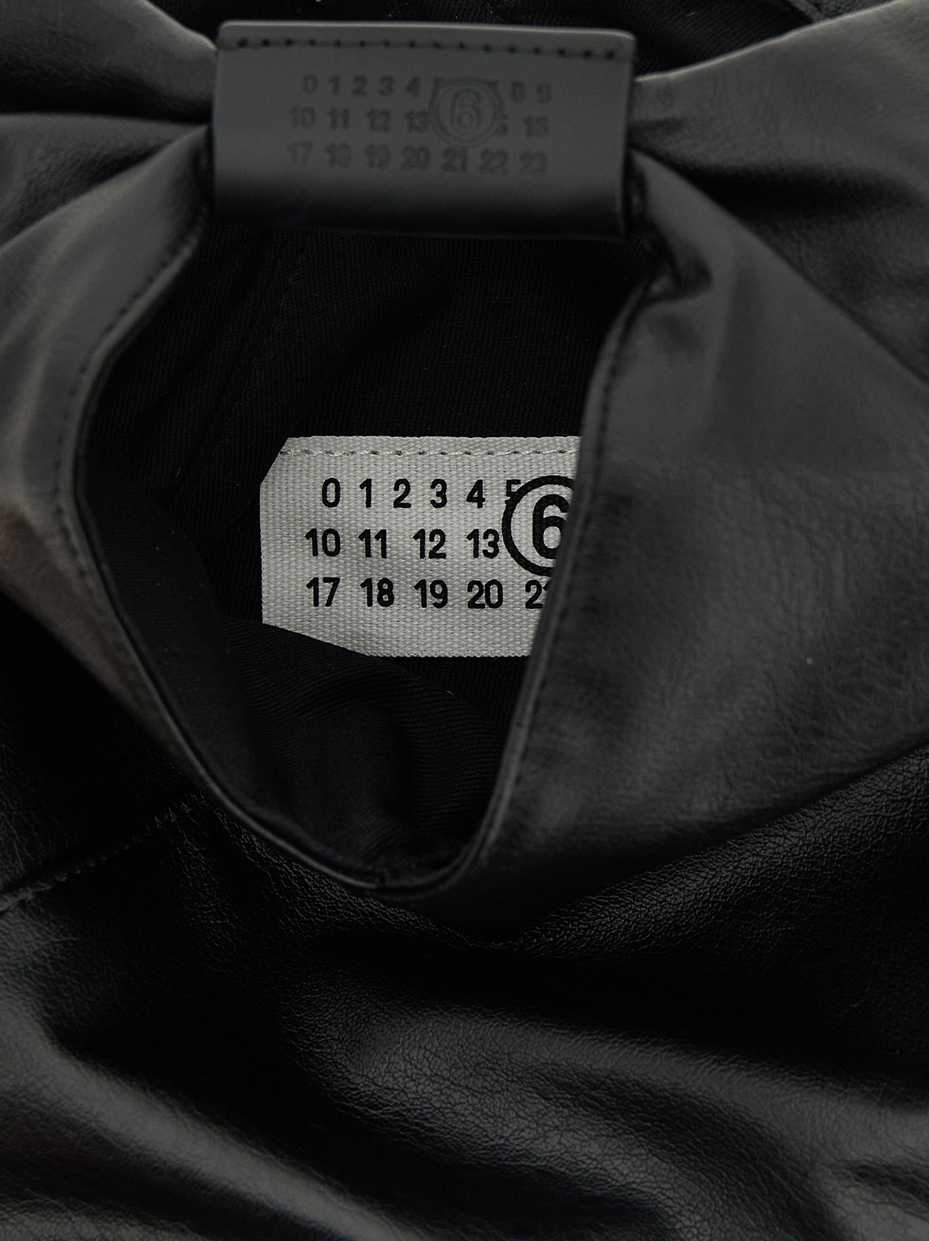 Fine leather 'Japanese' crossbody bag, fixed handle with embossed 'Numeric signature MM6', internal snap button closure, rear 'White stitch line', adjustable and removable shoulder strap.trap.