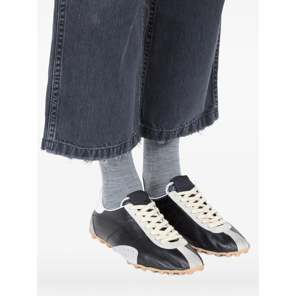 black suede detailing calfskin detailing lace-up fastening numeric logo at the tongue single white stitch at the back