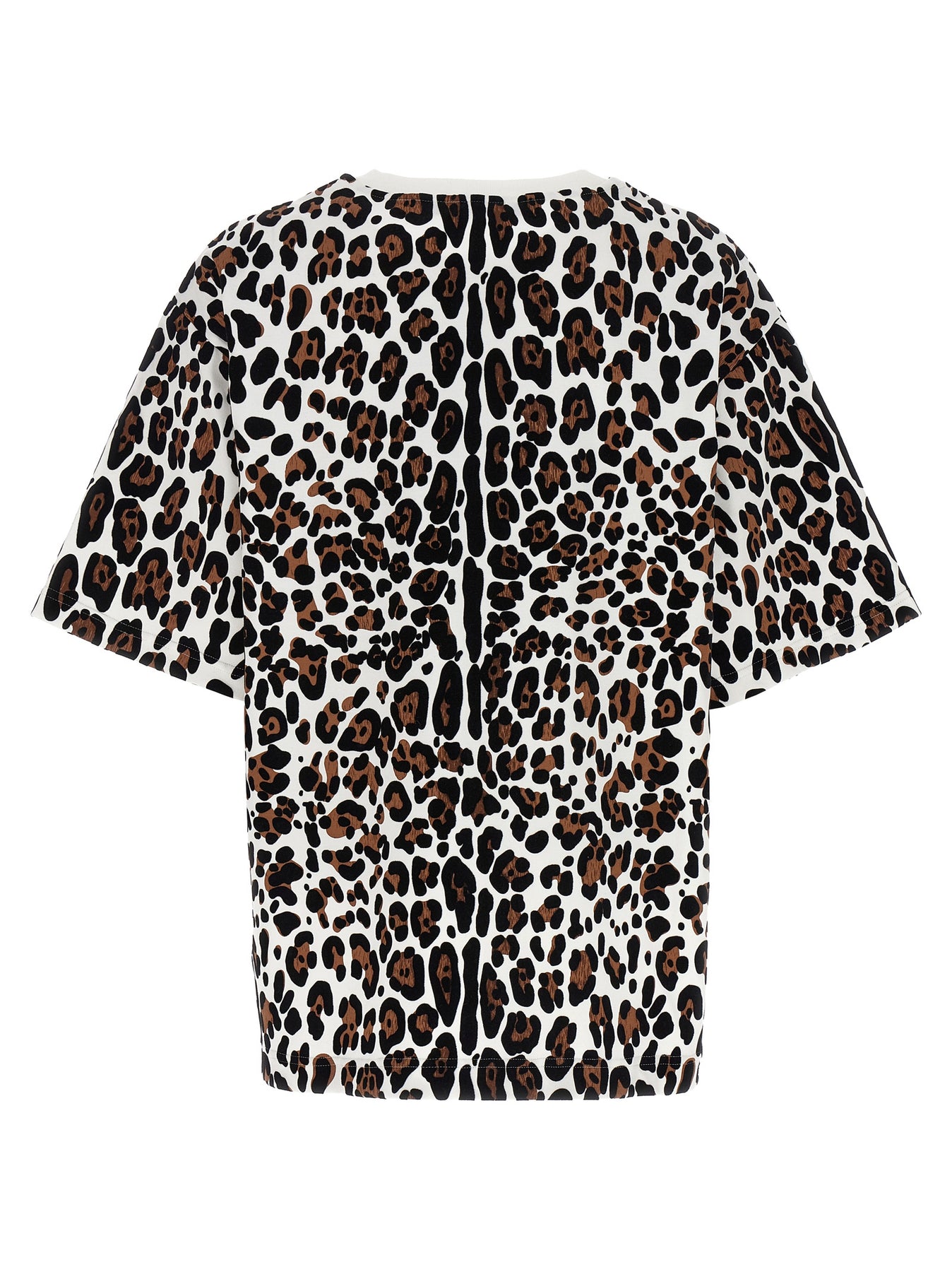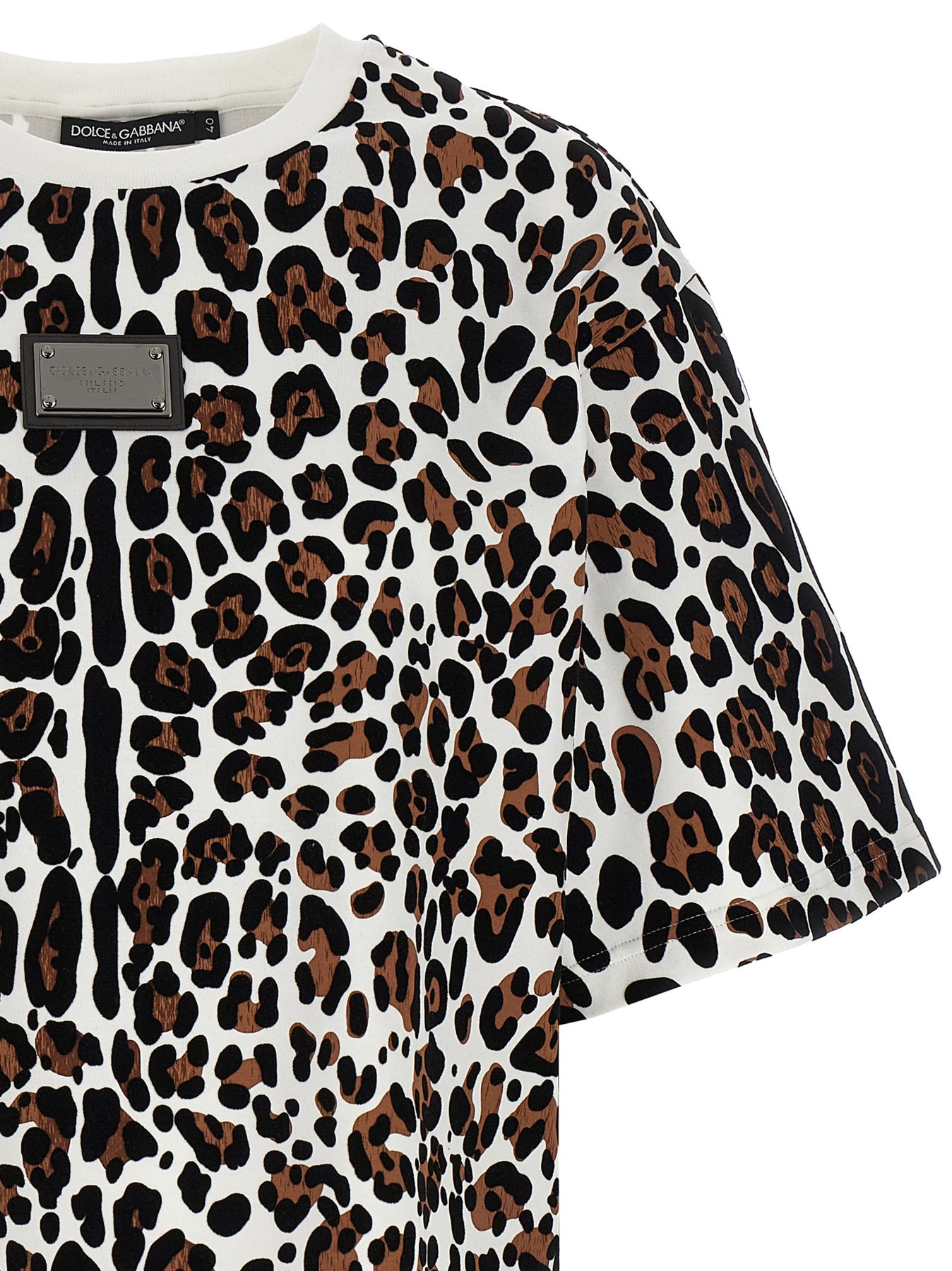 Cotton T-shirt with flocked animal print, front logo plaque, crewneck, and short sleeves.