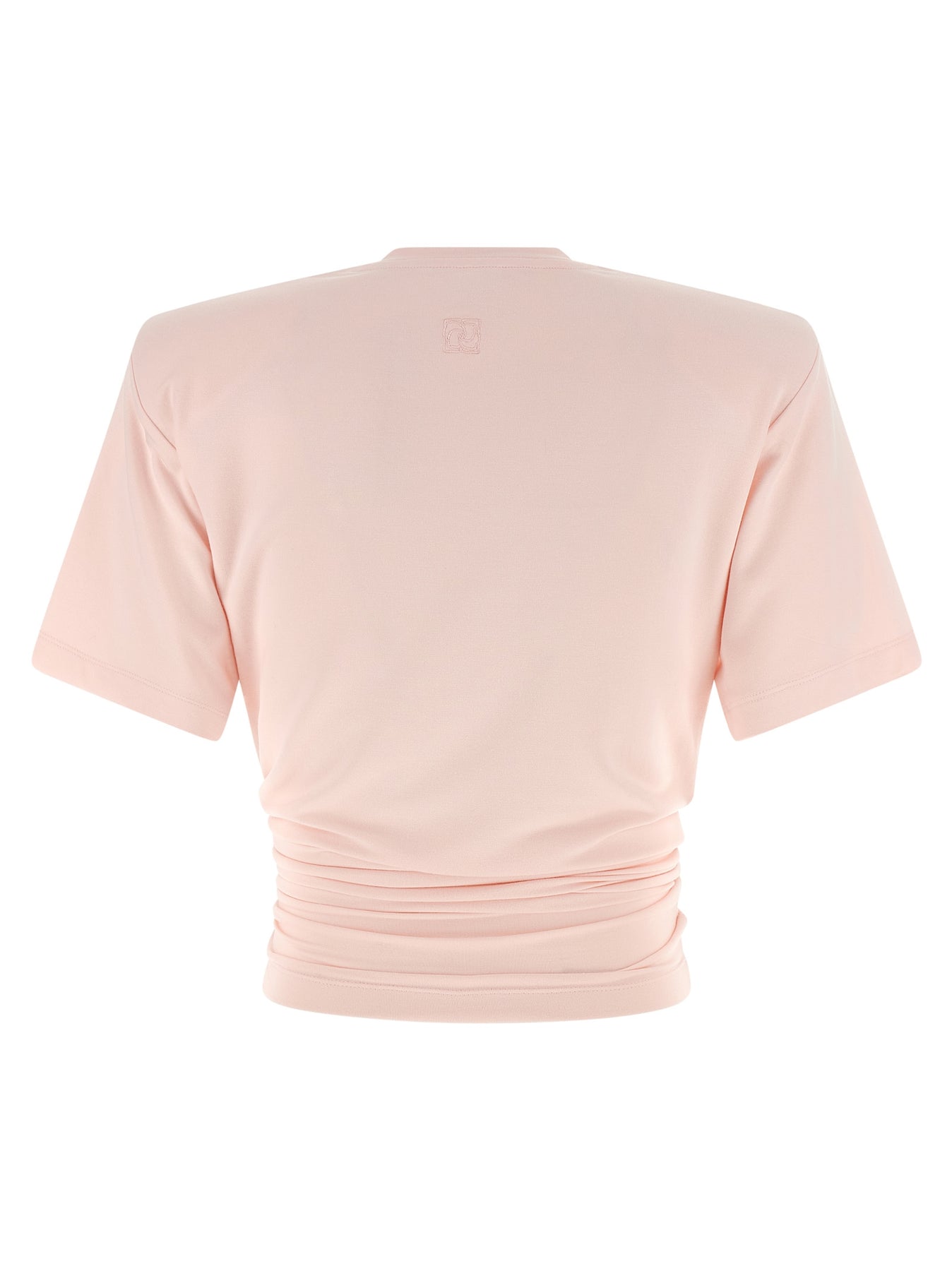 'RE26 shirt 01' slightly elasticized jersey t-shirt, crew neck, asymmetric length with flower-effect front knot and short sleeves.