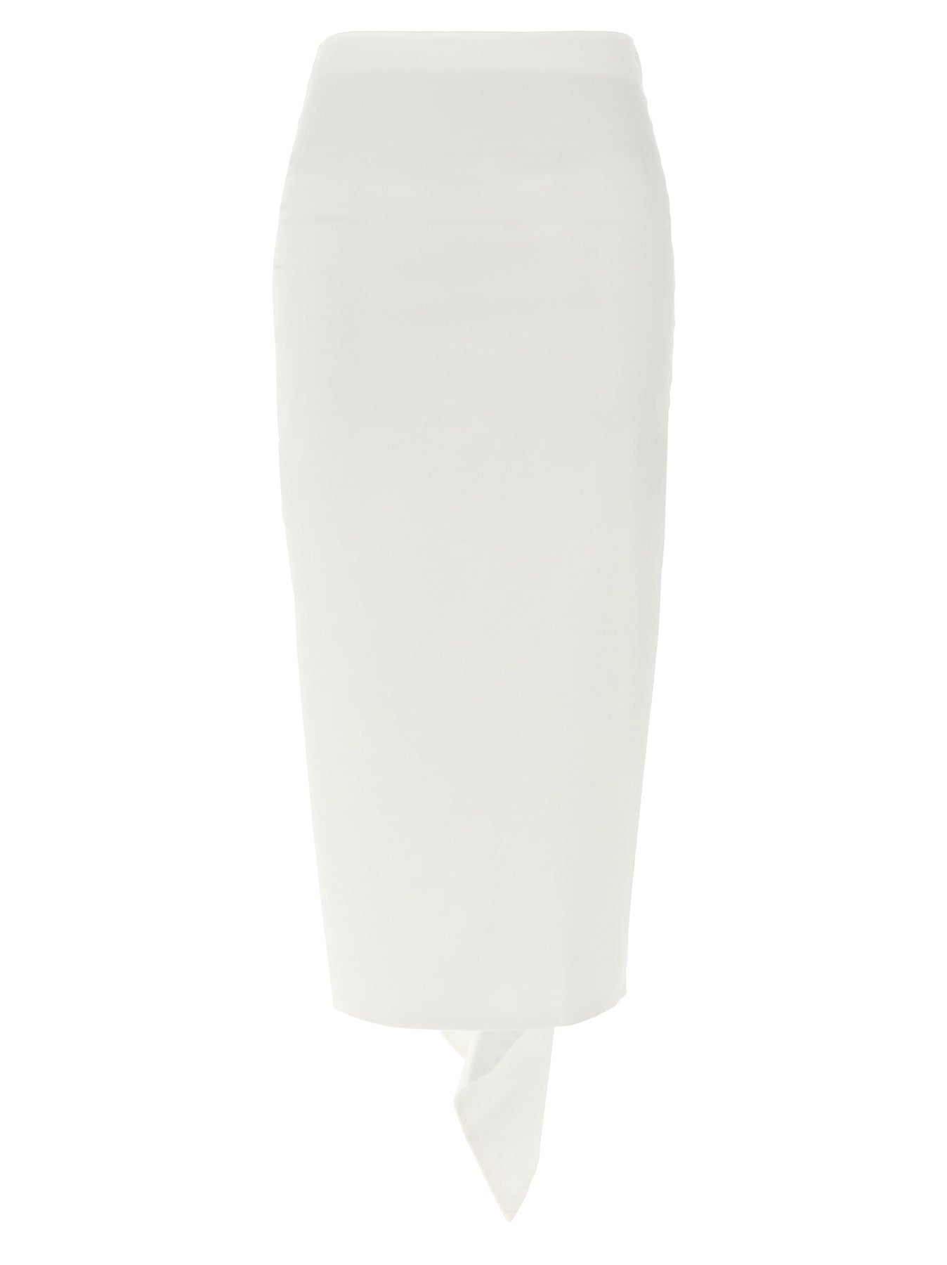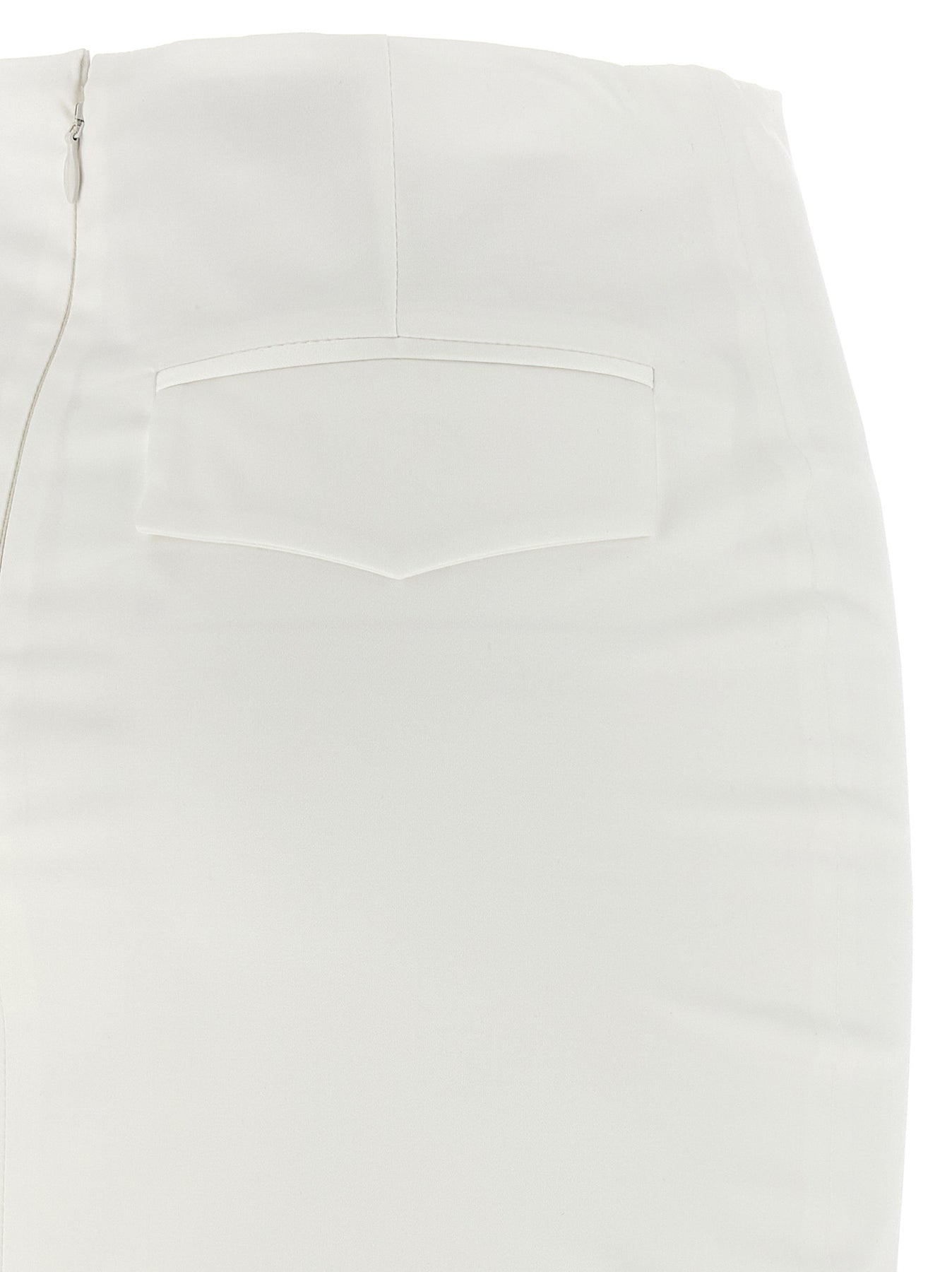 Longuette skirt in stretch cotton, sheath model with back flounce, back closure with zip and hook.
