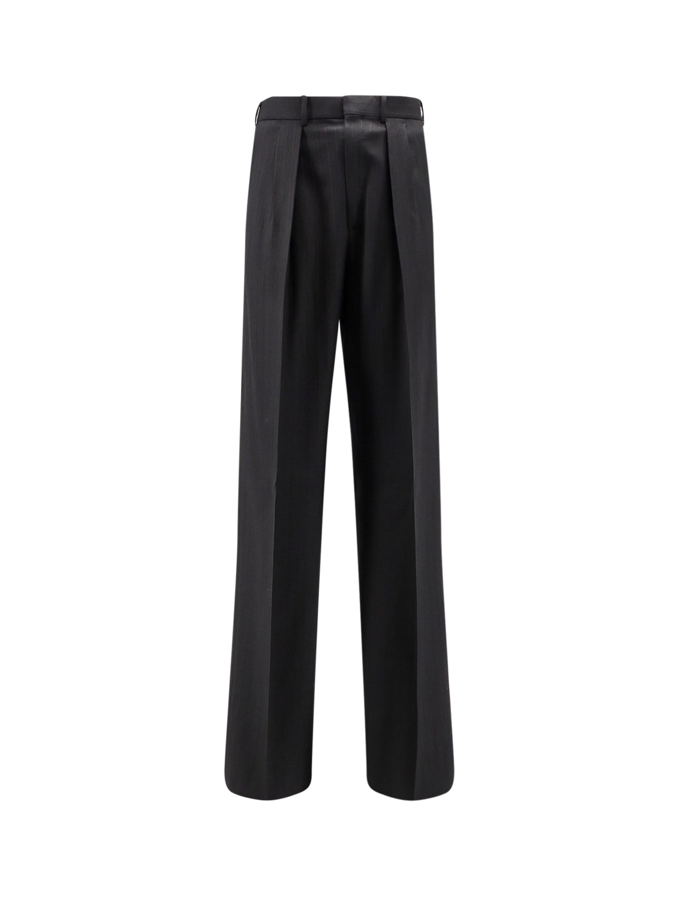 Zip, hook, and button closure Pinces detail Striped pattern Side welt pockets Back welt pockets with button Striped pattern 100% wool SKU: PLMD01W0114NAA