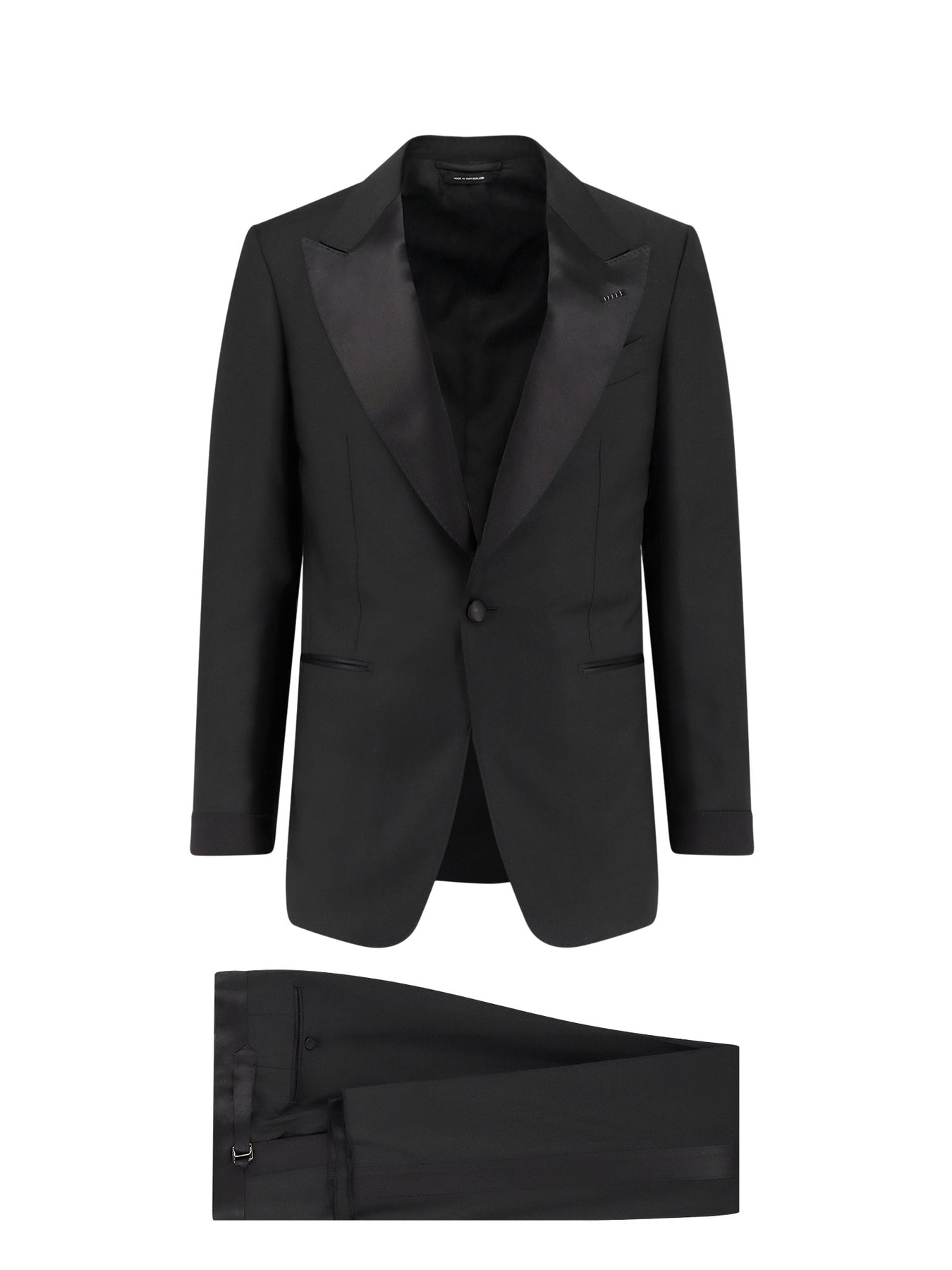 Single-breasted Covered button closure Satin peak lapel Zip and metal hook trousers Satin waistband with adjustable straps 96% silk, 4% elastane Lining: 59% cupro, 41% silk SKU: 2EEPT1WES01NAA