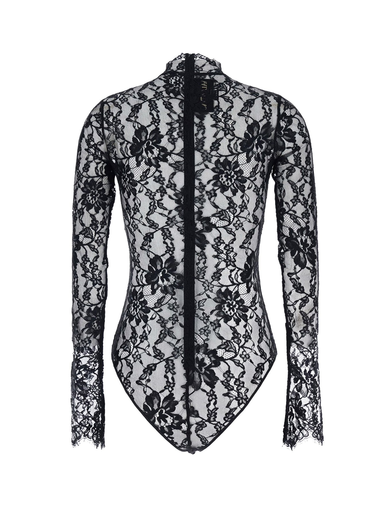 Adjustable metal hook closure High neck Long sleeves Back zip closure Made in Italy 93% polyamide 7% elastane SKU: 7B0MR01Z9TS0NO