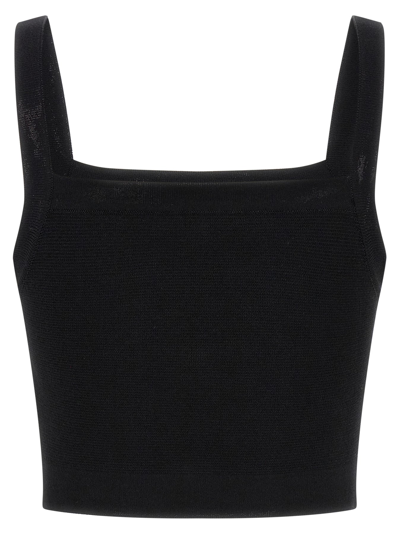 Shiny effect viscose knit top with 3 front 'Testa di leone' cropped button detail with thin straps.