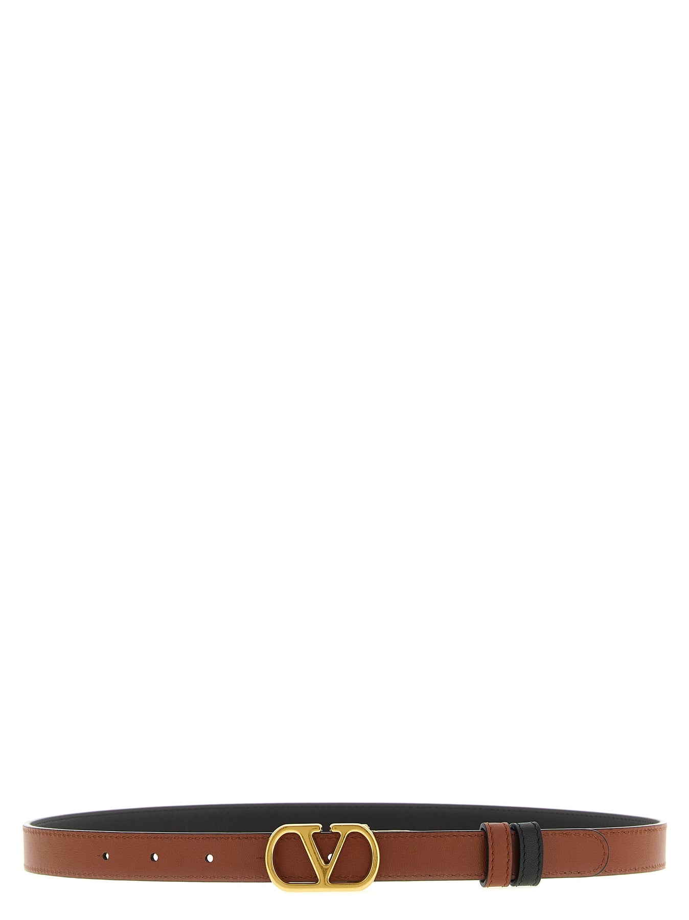 Reversible leather belt, signature brass 'VLogo' buckle with antique gold trim.