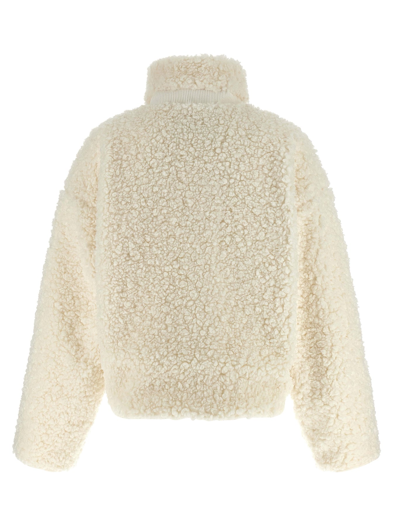 'EF' teddy-effect fabric jacket with ribbed stretch knit details, high neck, front zip closure, pockets, long sleeves with dropped shoulders, cotton lining.