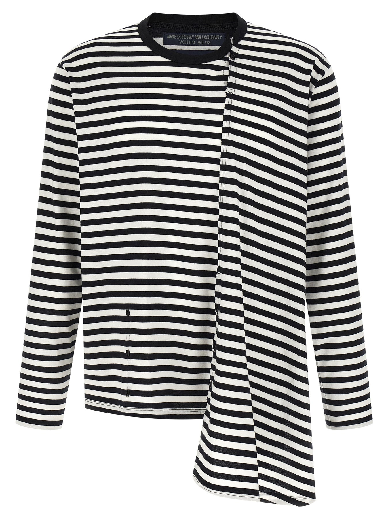'Paneled' striped cotton jersey sweater, crew neck Loose fit with asymmetric details, panels joined on the front with buttons and buttonholes, dropped shoulders, long sleeves.
