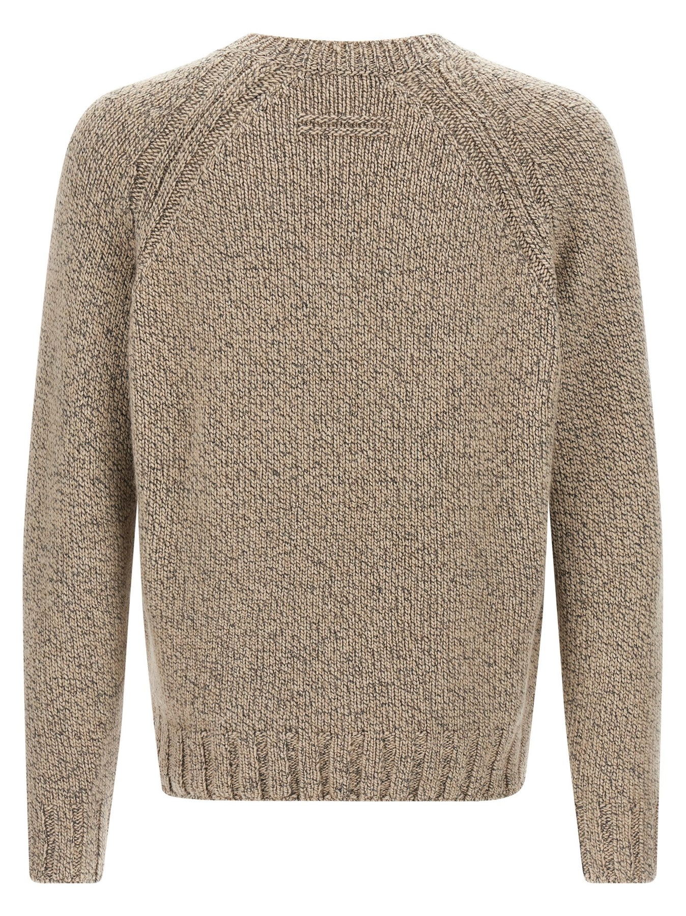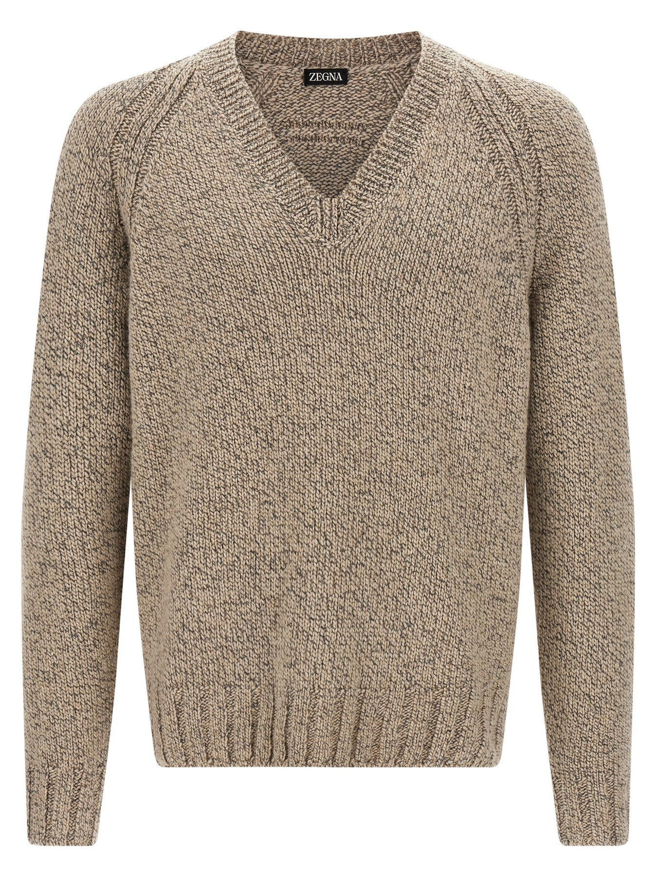 Knitted cashmere and wool mélange blend sweater, V-neck, long cuffed sleeves.
