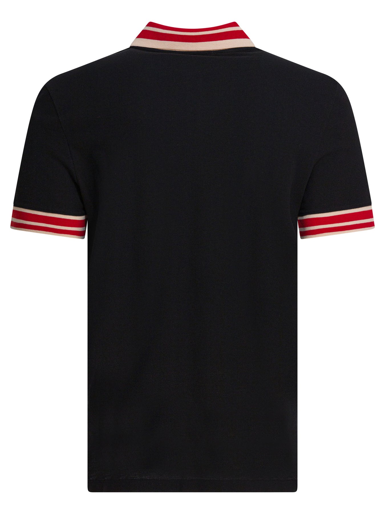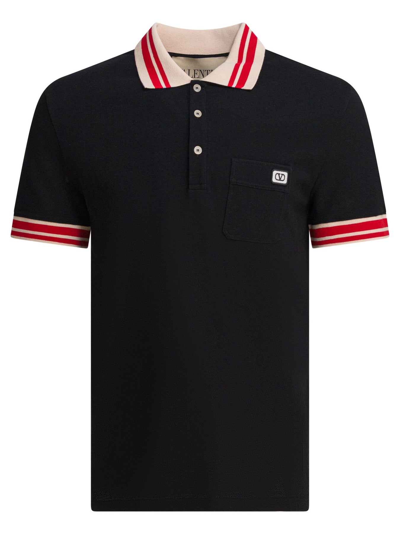 Valentino cotton short-sleeved polo shirt made of cotton pique with VLogo patch applied on the left breast pocket. The model features a classic polo collar, three-button front closure and striped edges on the sleeve bottom. Regular structure, straight silhouette and linear bottom characterize the garment. Construction elements highlight an essential construction designed for comfort and functionality. || - VLogo patch applied on breast pocket - Short sleeves - Cotton pique fabric - Classic collar - Three-button front closure - Striped edges on sleeve bottom - Regular fit