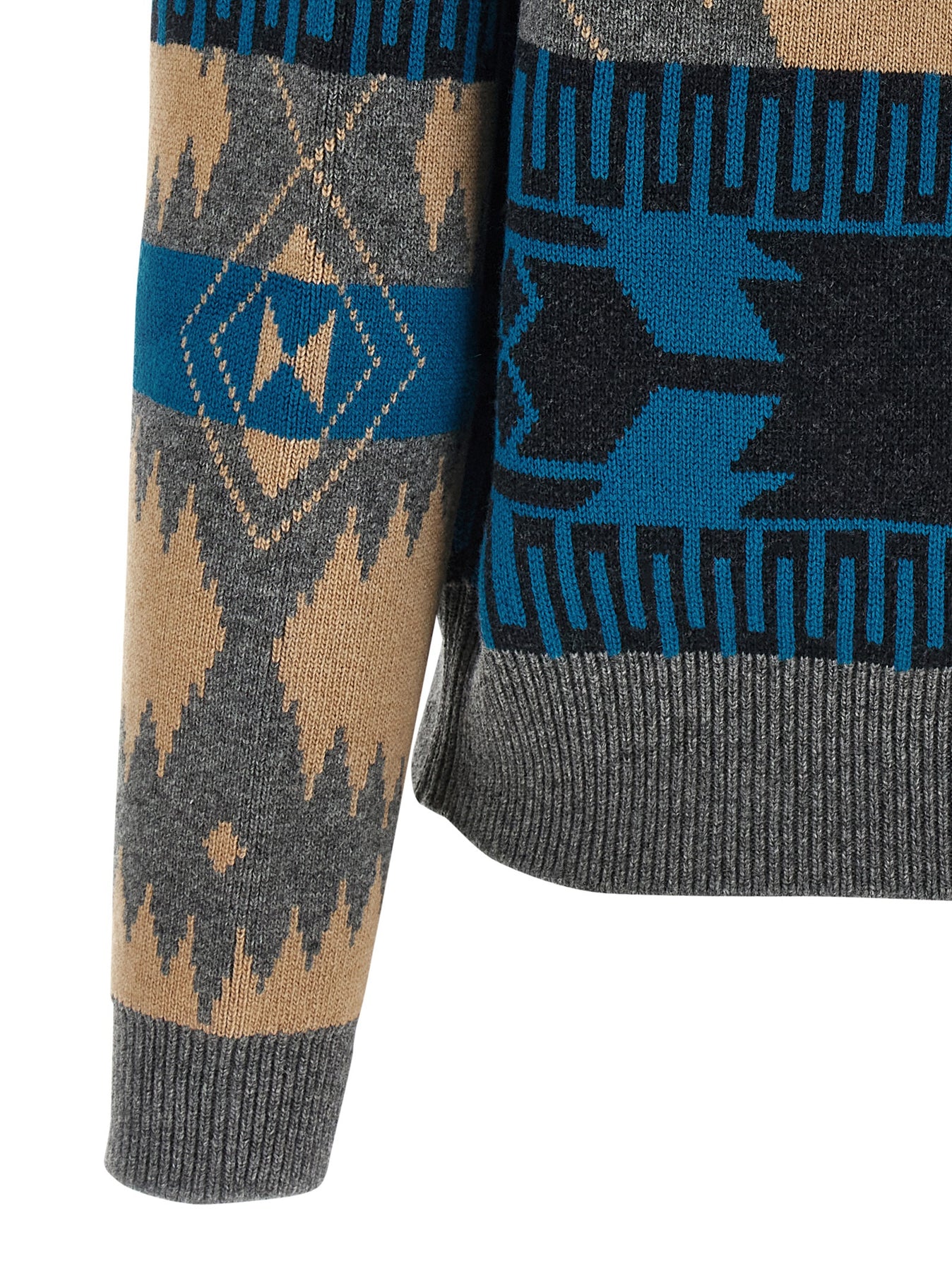 'Icon' cashmere jacquard bomber jacket cardigan with button closure, long cuffed sleeves.