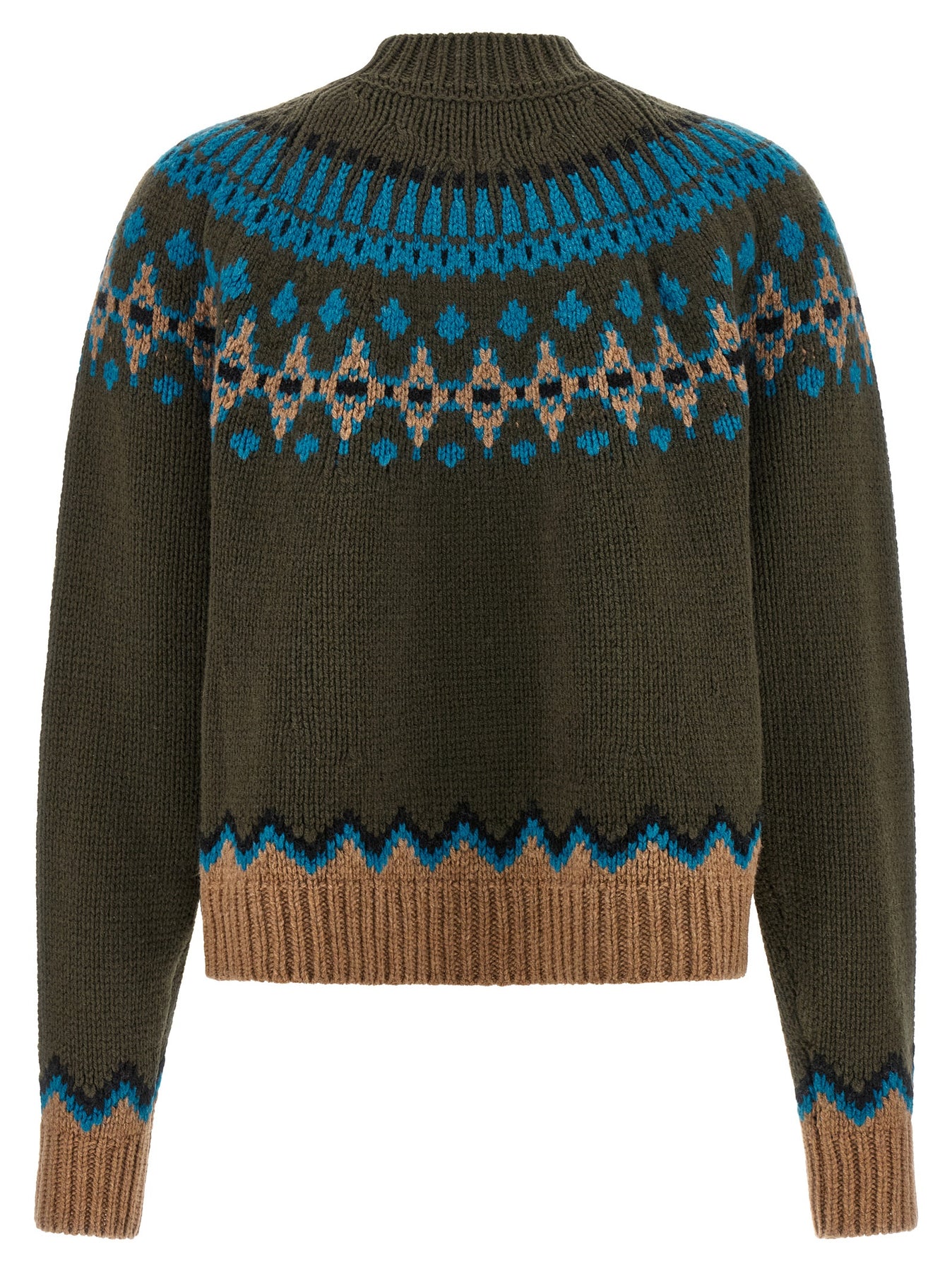 'Sweet Winter' virgin wool jacquard sweater with 'Fair Isle' pattern, crew neck, long cuffed sleeves.