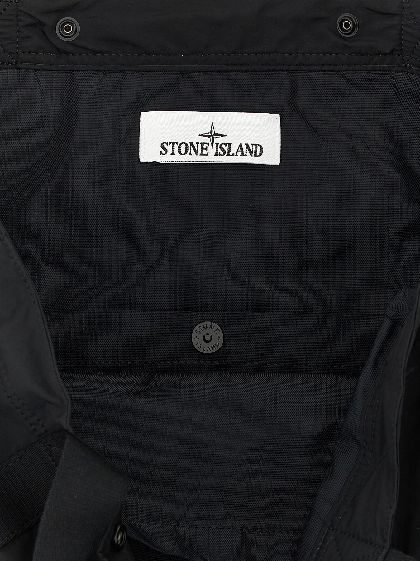 '9200012' shopping bag in garment-dyed Nylon Metal with a wrinkled-effect two-color recipe, polyurethane lining, 'Compass' logo patch and front zip pocket, internal snap button closure, double adjustable handle. SUSTAINABLE: This product is made of ECONYL regenerated nylon.®