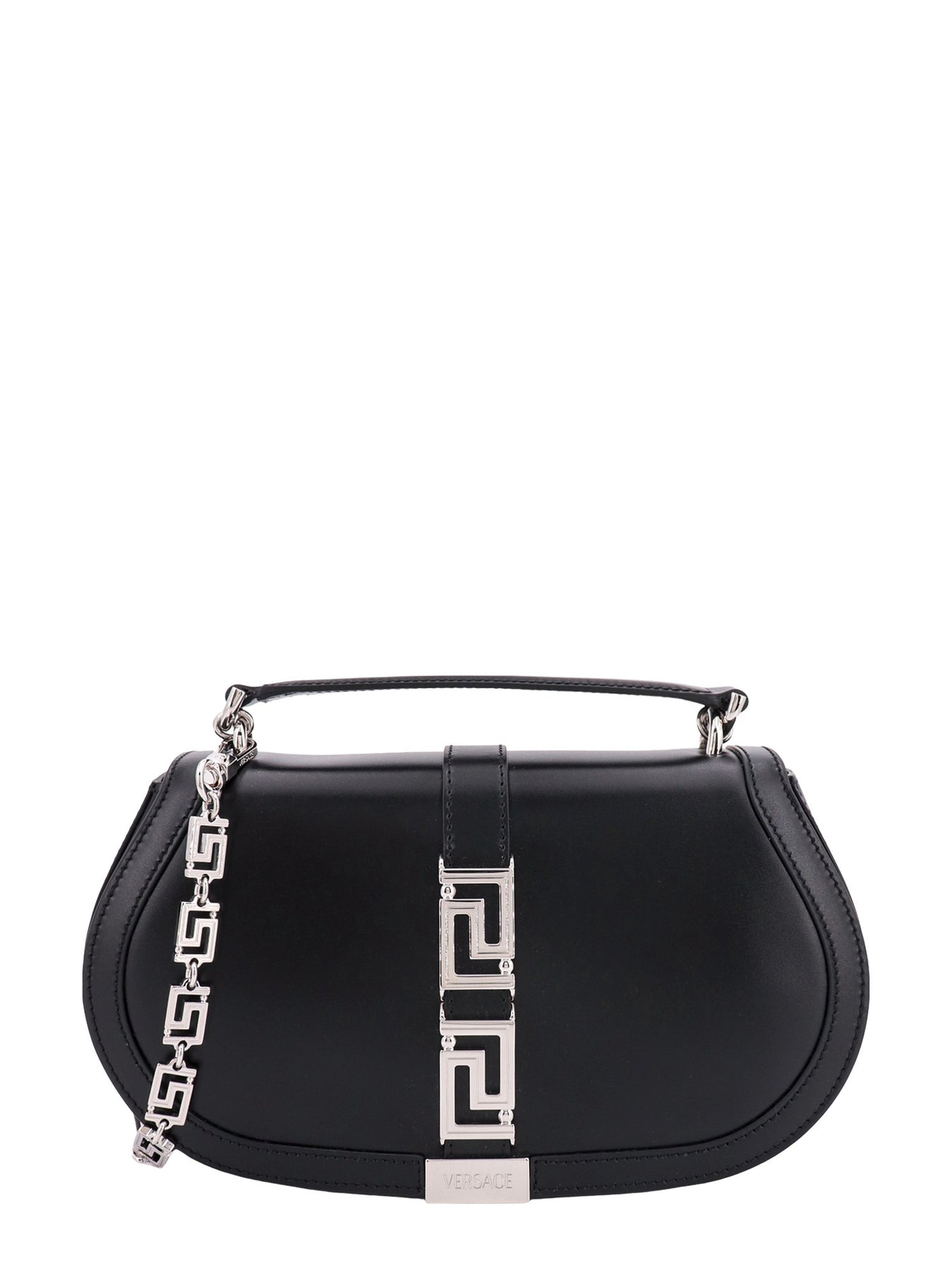 Leather Handbag With Frontal Metal La Greca Detail