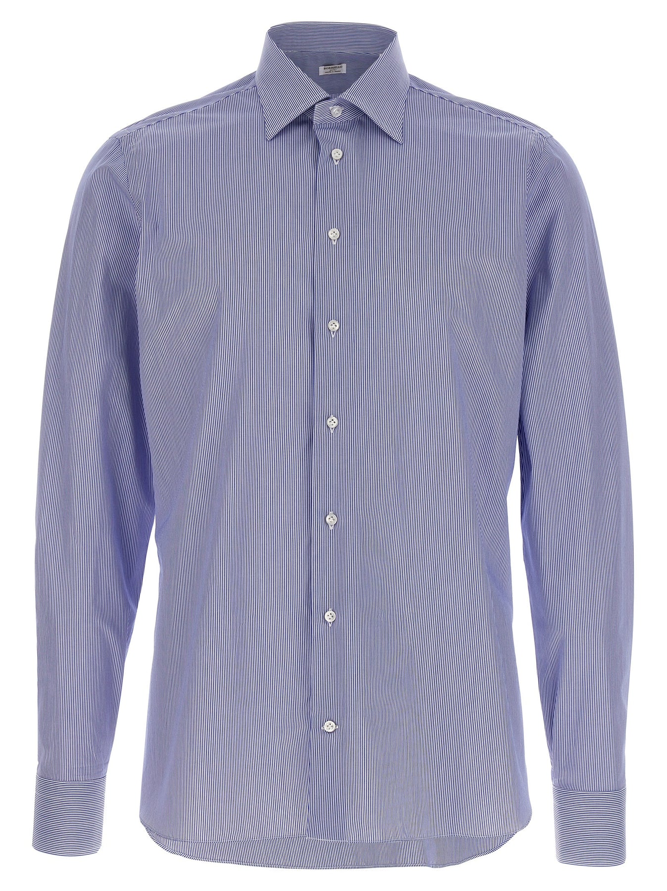 'Spaccanapoli' striped cotton twill shirt with button closure, long cuffed sleeves.